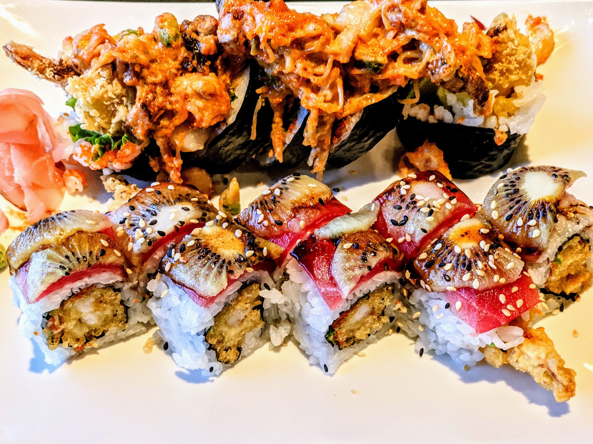 Read reviews at different places to get some good sushi and this was top rated, and highly recommended by customers, so my sister and I decided to give it a try. No. We got there and stood at the front to wait to be seated. No one showed. Plenty waitresses walked by. Some more guests got behind us about a minute we got there. Waited. I kept looking around for a hostess. Then an elderly couple walked in, went around us to the left, and told a waitress there were people waiting. Then this girl comes from the bar room, on our right, and takes us to a seat. Got our drinks almost immediately, and I ordered an appetizer right after she dropped them off. She never acknowledged our table for a solid 10 minutes after she left. We closed our menus and stacked them in hopes she would see and come back. She eventually did, and I had a few questions and we ordered. About 10 minutes later, we get our salad. The typical salad with the purple cabbage and carrots and disgusting, watery, pink, dollar store worthy ginger dressing. Thought this was a Japanese place? 10 minutes later, got the miso soup. Little to no flavor. I'm used to it being a little thicker and with a little more salty flavor, so this tasted very diluted. Still waiting for appetizer. Sister got part of her meal, some kind of noodle side dish, and I'm still wondering - where in the world is our appetizer? I finally grabbed our waitress and asked where it was and she sounded aloof and said she'd check. I thought - she must have forgotten. We got shrimp tempura. It takes, what, a quick minute to cook? Much less 30 minutes? They weren't really busy. A minute later she comes back with it. The sauce was piping hot! Who serves that hot of tempura sauce?? The shrimp was super hot so I know she asked for it and waited for them to finish it so she could bring it straight out. We ate the shrimp and then my sister got her meal and I got my sushi. I asked for eel sauce - which I'm used to it being thick - this, too, was watery. What?? About 5 minutes later my other meal I was taking home came. I got more tempura sauce because it was good once it was cooled down to an acceptable temperature for my sushi. Then I needed a refill. A different waitress saw my empty cup and got me a refill and I took the opportunity to ask - do you have the yum yum sauce and teriyaki sauce (every restaurant I've been to automatically brings you one of each). She says yes. Which one did I want? I said both. Hoping to have something good salvage this meal with a good sauce. She brings it back and the yum yum was pale pink, and watery also. Tasted bitter. Teriyaki tasted old and salty and not a dark color, but more brown. I feel cheap ingredients were used here. I ate 4 pieces of sushi, and now I feel sick. I LOVE sushi and am so disappointed with how it tasted and is now sitting with me. We were getting pressed for time because we were already there for over a hour. We both finished up and we asked for boxes. Didn't bring us enough. We pulled our cards out and sat them on top of the boxes. She was no where to be found. The other waitress asked to take some plates and she asked if we were together or separate. And kept walking. We said separate as she walked away. Our waitress kept coming by our table to others and turning and walking away and ignoring us. My sister began to get vocal. We were now inching up on being there for 2 hours. She finally returned with our checks and my sister threw her card down and I opened my check - thank god I did because she gave me my sisters (I ordered more food). But it was still wrong. I gave her my card and said the appetizer needs to be on mine and she has my ticket, and I need a thing for my sushi. She comes back with our checks, I got my box, and we left. We were hoping to be in and out in a hour at least. Food was sub par. Service was below standards. Food came out waaaay late. Sauces were watery and old tasting and very cheap. You want good Japanese food?? Go to Tokyo in Conyers or Monroe. It's a drive, but if you're ever up that way - that place is...