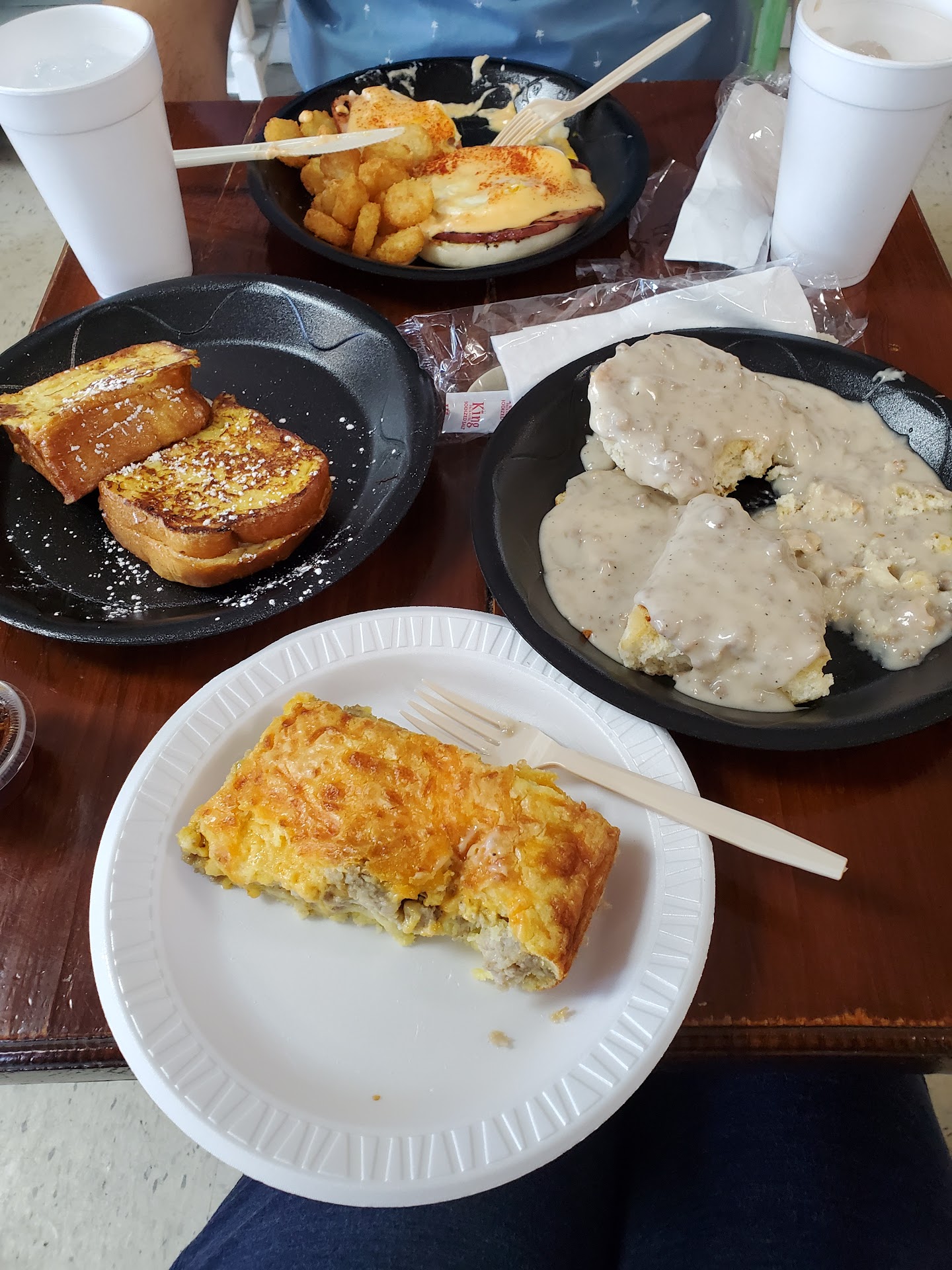 Read moreI have read many reviews praising this establishment particularly their breakfast but here's my story. My wife and I stopped in here for lunch one day. No other customers. She ordered a hamburger and since the "special" was a pork chop dinner with bread and just one vegetable (Isn't 2 vegetables standard on a dinner plate?) that was what I ordered. I selected snap beans as my vegetable. I'm sitting there anticipating a minimum of one fried pork chop and maybe 2? Waitress arrives to tell me no snap beans and turnips was the replacement. I wasn't thrilled but what the heck I'm getting a pork chop!! Imagine my surprise when she set down a plate with 2 (2 inch size) medallions disguised as the pork chop(s) and the spoonful of turnips! I had to ask for bread and those 2 little pieces were the size of the pork medallions. I kid you not. I'm a pretty good cook and quickly realized the 2 medallions were cut from a small diameter pork loin and was definitely not a pork chop!! Trying to make the most of it I asked for pepper sauce for the turnips. I got a small container of the red hot sauce used on chicken wings. Everyone in the south who eat vegetables knows what the small jar of peppers looks like. I took a bite and realized it was semi-warmed canned turnips with no seasoning. Disgusting I did eat the medallions and the bread so for almost $10 I had a sandwich at the most! I had heard and read the reviews and expected more. One and done as far as I'm concerned. Johnny V's for me if I'm in that area again. P.S. My sidekick approved of the hamburger but not...