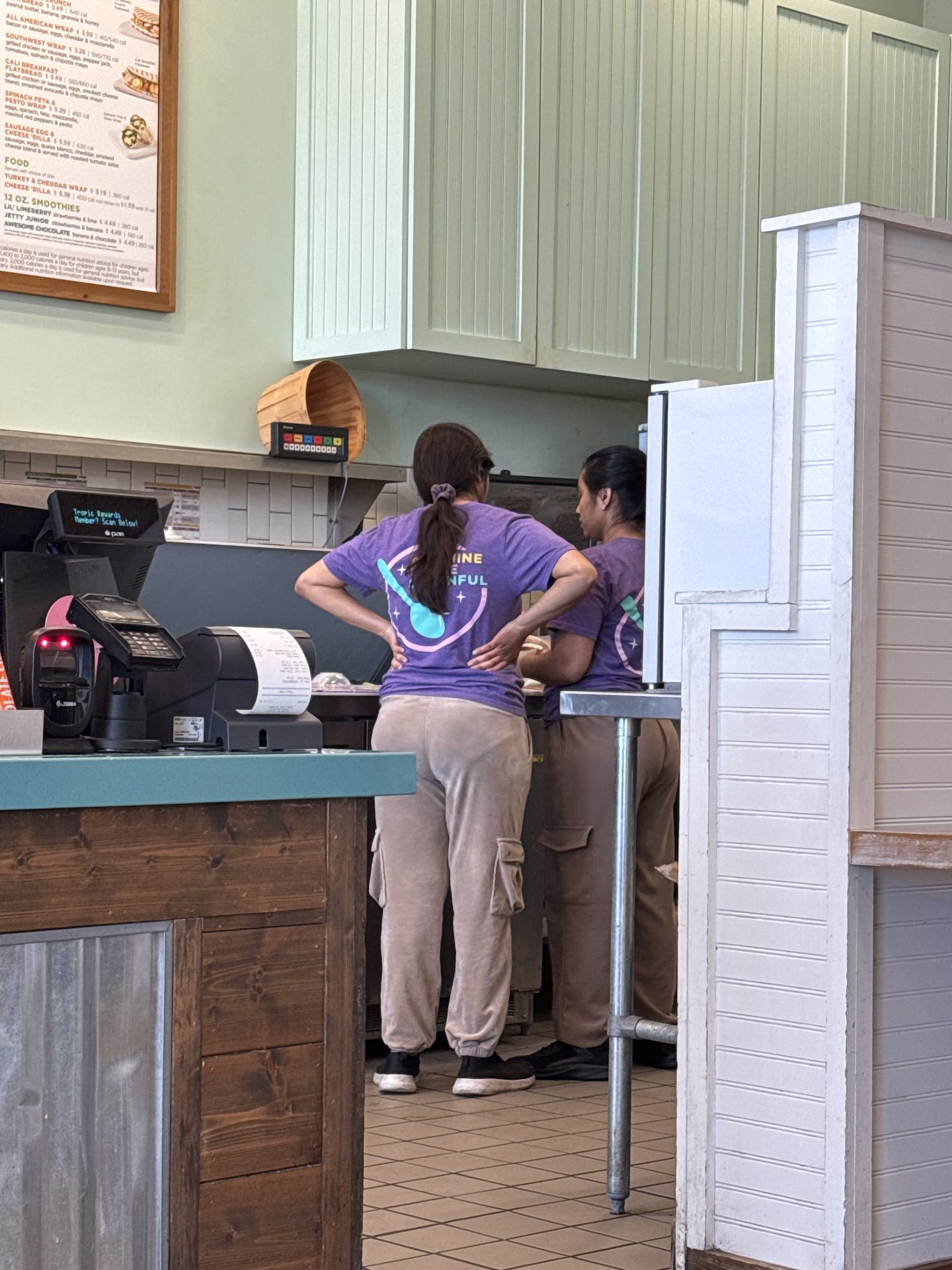Read moreI’m all about professionalism, being courteous & making someone feel welcome and these two ladies literally watched me open the door and come in, did not say one word to me or even make eye contact. When I walked in the lady on the left turned around and walked away. So I said “hello” and she just looked at me & very lightly & clearly unwillingly said “hi” and walked to the register and just sat there as if she was waiting for me to speak. A boy got his meal and said thank you on the way out and both of the ladies continued to talk to each other and ignore him. When my order was ready the lady on the right brought it to the counter and whispered something & walked off and kept talking to the other lady again. Still, never making eye contact or speaking. Worst service ever!!! My friend warned me about this location as she’s had the same experience every-time she’s come here so she no longer even eats at any tropical smoothy. This happened to be right next to my gym so I stopped bc it was convenient! I typically go to Smoothy King bc not only are their bowls bigger and have wayyy better customer service, except the one off Riverside, but they’re worth the money. For $12 you’d think we’d get a fair amount of açaí & better service! They will not get my business anymore!!!