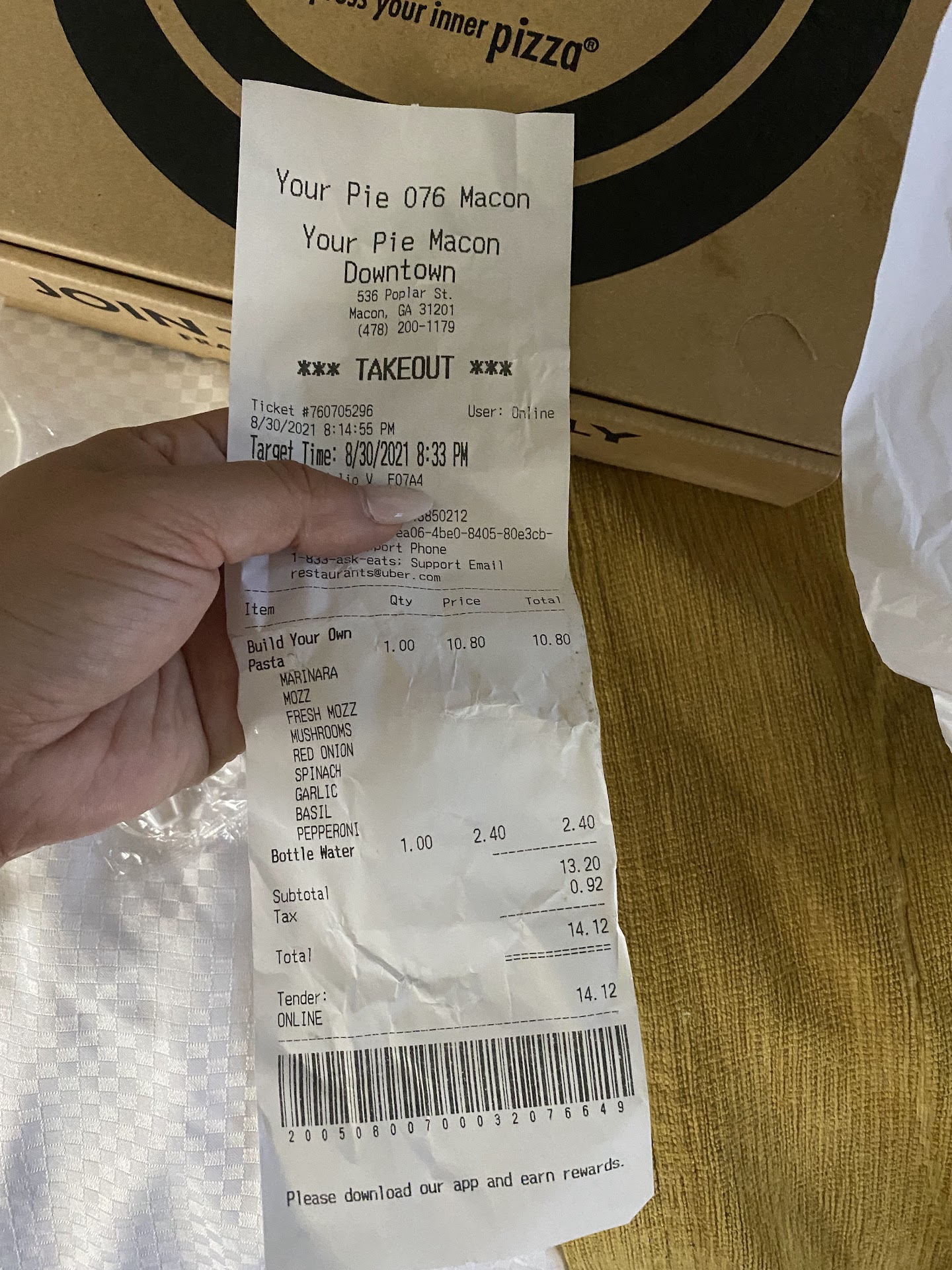 Read moreI had high hopes for this place coming from out of town. I ordered through Uber Eats and it was pretty simple to order. Had a lot of options and was craving pasta. When I received my order I immediately noticed the first thing that was wrong with the order. I ordered a bottled water and instead I received a cup with ice and some of the fountain water. Paid $2.40 for tap water. I then open the box and noticed that I didn’t get a fork or any type of utensils to be able to eat my food. Then I looked at the food and thought there was not enough cheese. I gave it the benefit of doubt and try to move the food around to see if maybe it got baked into it but there was very few pieces of cheese and some of it was not melted. On Uber eats I specifically chose marinara and it gives you an option to select up to 2 sauces. I also picked basil pesto which I was excited for. No basil pesto. I also chose 2 meats, pepperoni and bacon. I didn’t get either. I noticed that on the receipt some of the options I chose on Uber Eats were not listed on the receipt. Not sure if that’s a glitch with Uber Eats or with the restaurant. This meal was a disappointment to say the least...