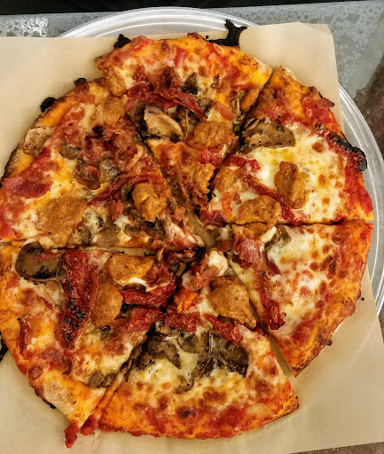 Good pizza. We both enjoyed it. I would have given it 4 starts but it is VERY LOUD in the restaurant. There is nothing there to absorb any sound. There were 3 guys hanging out at the bar watching football. They were not being overly loud but add in the music from the restaurant and we couldn't hear each other. My husband could not hear the employee who was making his pizza. He has a little bit of a hard time hearing and when you add masks, loud patrons, and background music, he could hear nothing. We sat through dinner pretty much not talking because he couldn't hear me. Enough about the volume....on to the food. We both had pizza "combo's." Pizza topping are unlimited. Get it the way you like it and we both did. Toppings were great. They tend to end up in the center and the outside ring is pretty empty. My toppings were great. I tend to lean toward the veggies and fancy toppings. He leans towards the meats and the classics. He had marinara sauce and I had Alfredo. The sauces were tasty. The crust just seems to be a vehicle for the toppings and and sauce. There wasn't much to taste. We both had Caesar salads. They are pre-made and ready to go by the register. You pick your dressing up at the same place. I wish I would have paid more attention. My salad had some dark brown lettuce. It was like what you find at the bottom of the stalk. No big deal but it should have been thrown away by an employee, not a customer. The dressing was tasty and we both enjoyed it. Drinks are self serve. We did not have dessert. The ladies bathroom was clean. Maybe it is a sign of the times, but not one employee said anything to us besides taking out order. We were at the restaurant about 7 pm on a Friday night. There were 3 guys at the bar, and 2 other couples in the restaurant. They did have several call ahead and take out orders but they were far...