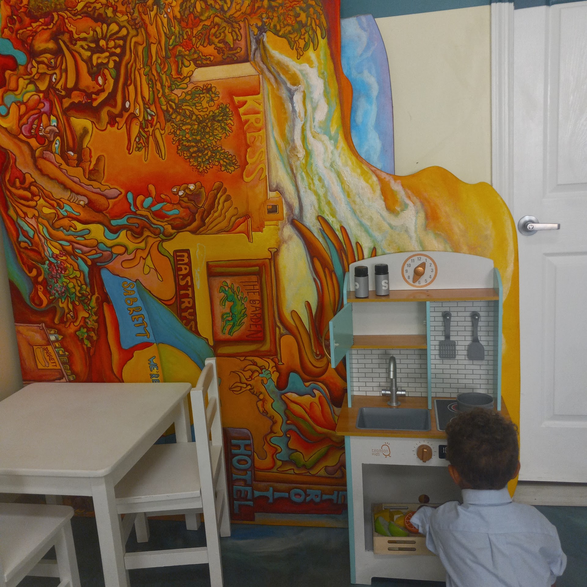 The atmosphere was very inviting, pantings by local artist, and even had a friendly kids play/eating area!