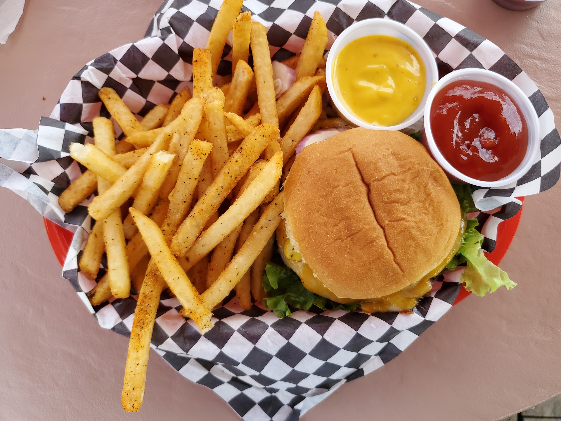 Stopped in today with my daughter after swimming at the beach. I cant recommend this place for a few reasons. First I ordered the 1/2 pound burger, just lettuce, tomato and onion, no fries, it was almost 11.00. Daughter got a chili hot dog with fries. Bill was almost 21.00 the thing that upsets me is I work in restaurants, cut and patty 8 ounce burgers for 20+ years. The hamburger was 4-5 ounces at most. I guarantee you it's not an 8 ounce burger. Looked like a McDonald's burger. With no cheese or sides 11.00 bucks is insane. 6.00 for a can of beer from a bartender who seemed more friendly to the drunk "regulars" sitting on the patio. The kids at the takeout window were super friendly, but for 30.00 for a 4 ounce burger, can of beer, and a hot dog with fries, you can do much better somewhere else. I understand it's on the beach, but with the other responses to people's negative reviews about prices are high due to quality...4 ounce burger for 11.00...c'mon seriously. Wont come back and have shared this experience with my...