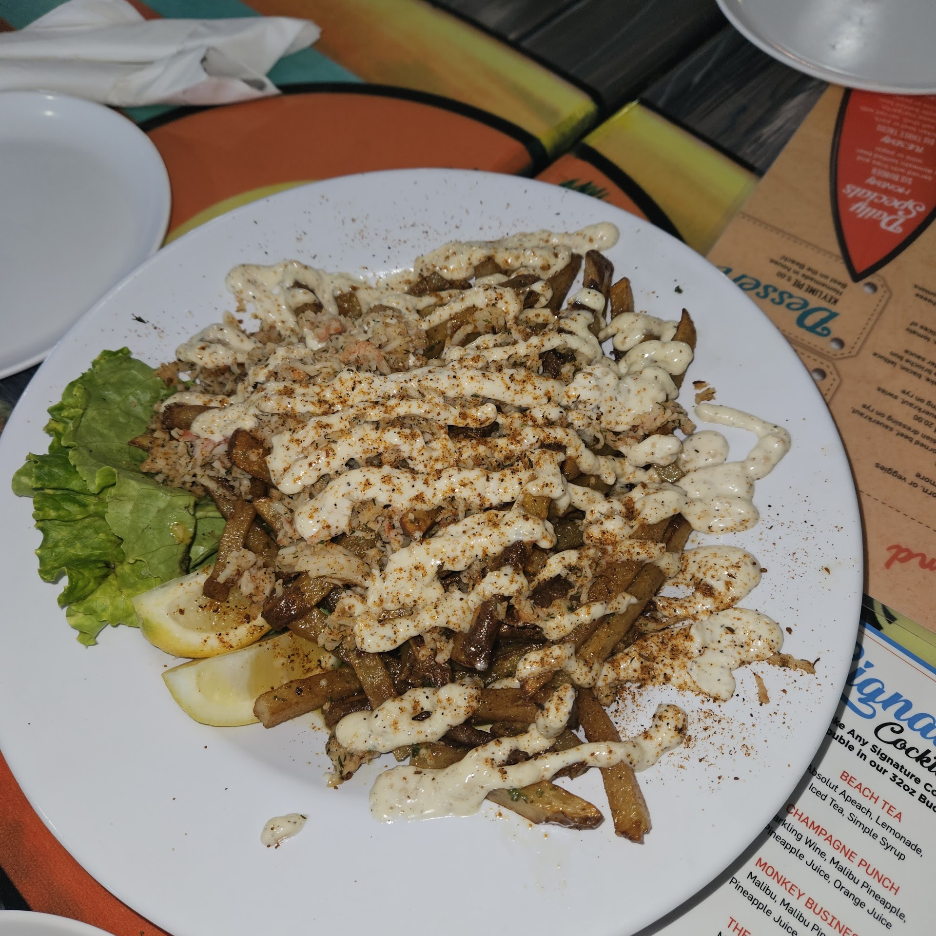 My husband tried eating his grouper sandwich, but stated several times that something about it wasn’t right. He said it wasn’t meaty like grouper, the fish was watery and hollow. He said he didn’t think it was real. Knowing the difference between farm-raised and wild-caught, he was sure it was farm-raised. He didn’t eat it, but elected to not send it back. I tried my cauliflower. It tasted previously frozen, mostly bread, tiny pieces of cauliflower. The sauce was good, but the cauliflower was not. I did not eat it. I dove into my loaded fries which looked good. I noticed from the start that there wasn’t a lot of topping and it didn’t look like what I expected. No chunks, no knuckle or claw meat, just finely shredded crumbles topped with two sauces. Still hoping for a better experience, I moved the fries around in the butter and took a bite. The butter garlic sauce was delicious. The garlic aioli was awesome. The fries were good. I ate a few more fries around the sides, dipping them in sauce, but not picking up much topping. What I had was delicious so at this point, when the server checked in, I told her I was fine, but that was before I tasted the topping. I took a couple of bites of the “lobster” and the texture wasn’t right. It was soft and mushy. I almost spit it out. Then I saw a few thin, flat, wide, discolored pieces and I knew. I asked the server to ask if they used imitation crab meat. She adamantly said, “No, that’s lobster.” I said, can you just ask please. She said, “Ok, but it’s lobster.” I then said, I think its surimi, the imitation crab stick, but can you just check please. She came back to the table and said, “He said it’s half and half.” I was in disbelief that this restaurant would lie on their menu and serve something they didn’t have and that I had repeatedly been misled about what I was being fed. I planted my face in my hands and had to take a deep breath. I told her, “YOU ALL CANNOT DO THAT. You can’t mislead people in this way. I knew this wasn’t lobster. You can’t put that in the menu and give people something else. I cannot eat this. And what you’re doing is dangerous. You could make someone sick. What about people who are allergic?” Bless her heart, poor thing actually told me, “He said IT WOULD BE TOO EXPENSIVE IF WE USED REAL MEAT.” At that point, I was entirely done. I told her she could take it away.