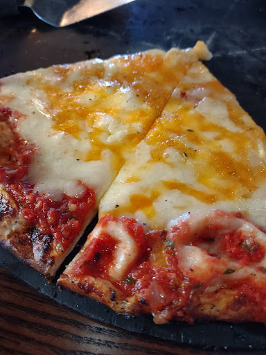 You order your food at the counter and they ask if you would like to leave a tip. We left a 20% tip as we always do and ended up having to bus our own table, multiple times. Hindsight, zero tip was deserved. The food was brought out, pizza before the appetizer, there was no room to put any of the food on the table and the people who brought out the food did not help clear any space and seemed confused and without personality. My husband or I had to stand because there were not enough seats available in the restaurant. It was rushed, cluttered, stressful, there was poor communication, we ordered a non-dairy cheese pizza and got a regular Cheese pizza. When we told the person who dropped off our pizza this, they just left the pizza and disappeared, not communicating to us what the plan was to remedy the situation. I had to stand in line behind other people ordering all over again to ask what was happening with this pizza. In the meantime a 10-year-old little boy sat there without any food.