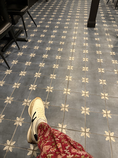 The atmosphere was giving modern Indian. The art work is beautiful and a true representation of modern Indian culture. The bathrooms were clean and even had a bidet!