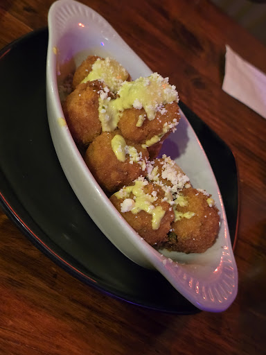 We started with the elote corn bites, and let me tell ya â those little fried nuggets were dang tasty. A splash of Cholula and theyâd be perfect. Went up to the bar for round two of beers and Ollie himself served âem up⌠on the house. That right there earns points in my book.
