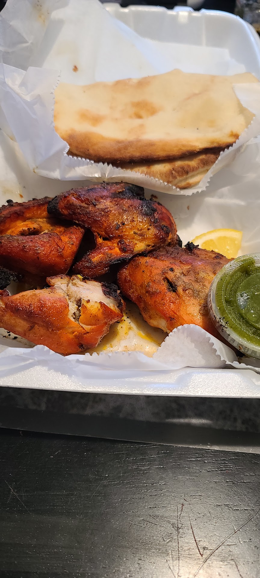 Customer service was great and not rushed at all. I ordered lamb curry with rice , 2 veggie samosas, and a 4pc chicken tandoori with naan bread. Total of about $26 gets me enough food to eat for lunch. The chicken tandoori came in all cuts. Wing, leg, thigh and breast. I have been to many indian resturaunts and this is the first time i was offered tandoori in breast or wing. The wing was great, the thigh was awsome, and the leg was phenomenal. Dipping it in the green sauce with a little of the amazingly fresh naan bread was very tasty. The chicken had a grillled char flavor that was very nice. The breast was super dry and pink at the bone🤔. The lamb curry sauce was superb. Must have been one of the best I ever had. The lamb however was a bit over cooked, not all but most. The ones that were not over cooked tasted great. The rice was very nice and moist , exactly how I like it. Now for the samosas. I normally like to order meat samosas and if they dont have I will accept chicken. They didnt have either one so i went for the veggie ones. They tasted amazing. Very good. Dipped in the green sauce it was wow. The brown sauce was the BEST sauce i have had to this date at any indo/pak/bengali resturaunt. I dont know whats in it but it tasted like a syrupy cumin like sauce. So good that i made sure my last bite was dipped in it. I ordered a side of mango pickel. Its very rare yo find this nowadays and i was super excited to have it. It wasnt as good as the ones i buy from the supermarket but it was ok for being able to have it at a resturaunt. I will def come back and try other dishes and another order of samosas with that awsome brown sauce. I recomend this place but ask them not to over cook the lamb and not undercook part of...