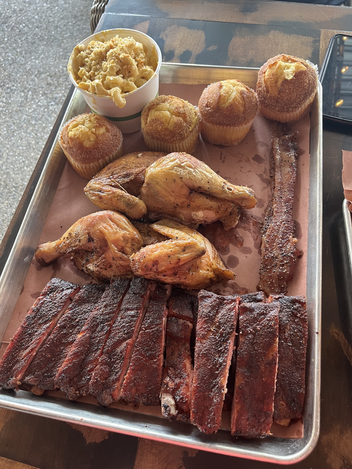 We have ordered carryout from this location and the one in Clawson a few times and the food is always excellent. The ribs are so so good, as well as the Mac and cheese. We decided to dine in a few days ago and the experience was not great. Donāt get me wrong, the food was delicious. But they are clearly very short staffed. We arrived around 5:00 on a Saturday. The place wasnāt terribly busy but it seemed like the staff was very overwhelmed. We didnāt know that they donāt have table service, you need to order at the counter. Thatās ok but we sat around trying to find someone to explain that to us for a while. Eventually we figured it out, got a table and I ordered. We ordered the feast for 4, a few lemonades for the kids and a sweet tea. My partner got the kids waters but he had to search the side stands for cups. Our food arrived fast and it looked great. However we couldnāt get plates, silverware, napkins, straws or our drinks. I hunted it all down myself with the help of the single bus person/ server I could find. The individual was lovely but there was one of them and a restaurant half full of patrons. On a Saturday.
