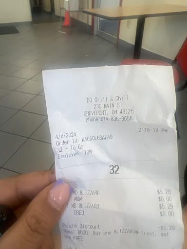 If I could give a 0 star review I would! We have lived in Groveport for 7 years, and I have had very few times that I have actually enjoyed this restaurant. Tonight though TOOK THE CAKE! My wife went to Dairy QueenTo get the family some blizzards and bring them home to us, mind you we only live 30 seconds down the road. By the time she got home to us and I opened my blizzard and everyone else’s, I found that they were all about 3/4 of the way full and mostly melted. When I went back to try to get somebody to make this right no one really wanted to work with me and I got a refund for one blizzard, when we bought six. I would venture to say that if you would hire some employees that were actually concerned About doing a good job, instead of seeming like they were just miserable to be there, The service might be better. I can guarantee you that this will be the last time that we ever go to this Dairy Queen. We would much rather make the trip to the Canal...