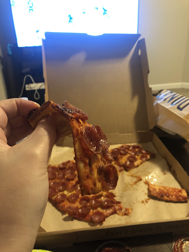 You get what you pay for, and I'm taking about what you pay employees. Ordered online, ETA for order was 15mins after order. Due to traffic and a long post office visit I arrived 12 minutes after the promise time, 27 minutes from order time. After waiting two minutes at the drive through to be greeted I drove around the building again. After waiting 2 more minutes, now 31 minutes after ordering, the employee finally greeted me and told me that they had to fire the pizzas. I ordered a cheese and a pepperoni, he said an additional 7 minutes for the firing, indicating the pizzas were already prepped, just not fired, clearly meaning that our order had gone unnoticed for now 31 minutes, and only upon arriving to pick it up we're the employees made aware they had an order. This was the first ticket of the day.