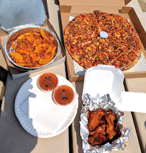 Edit: I picked up lunch here again today. I ordered a 16" Caribbean jerk chicken pizza and a side of 5 bone-in original BBQ wings.