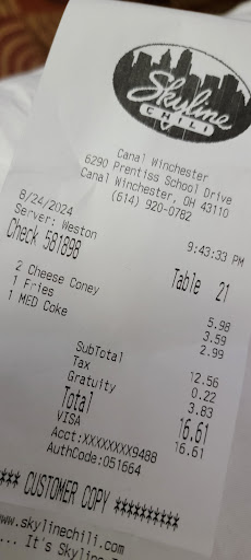 Read moreI have been going to skyline my entire life. My family goes several times a month. This location has been going downhill for quite some time now, and it hit an all time low when we went last Saturday. There was one sever on the floor and he seemed new and was trying his best. There were 4 or 5 people on the line that were doing absolutely nothing. Took forever to get drinks because the one server was swamped, then took forever to make our food because the line people were on their phones. The manager on duty was the only other person actually working, but wasn't holding the crew accountable. The restaurant itself seems really dingy like it hasn't been cleaned properly in years. The tile at the bar has been a mess for years. The bathroom is very gross, and I cringe when my child says they need to go while we're there. Like I said, we really love skyline, but this particular location is making it hard to continue returning because of the poor appearance, lack of cleaning, and now poor service on top. The owner should really take a...