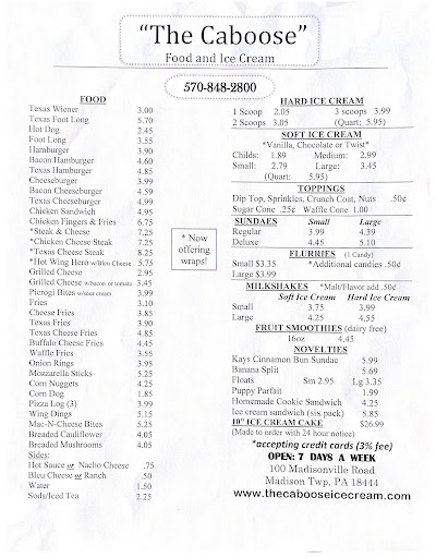 Read moreI was looking for somewhere that served Hershey’s ice cream so I could get my daughter’s favorite ice cream to surprise her for her birthday. I e-mailed Caboose to ask if it was possible to order a 3 gallon tub of it as that is the only size the flavor she likes comes in. They got right back to me and said that it would be no problem. There was a miscommunication on my part about when I needed it and they called Hershey’s and had it added to their order last minute so I would have it on the day I wanted it. When I went to pick it up, the girls were very friendly and efficient in getting it for me. I’m not a regular customer as I live about half an hour away but I will definitely make a point of stopping there the next time I’m in the area. Great...