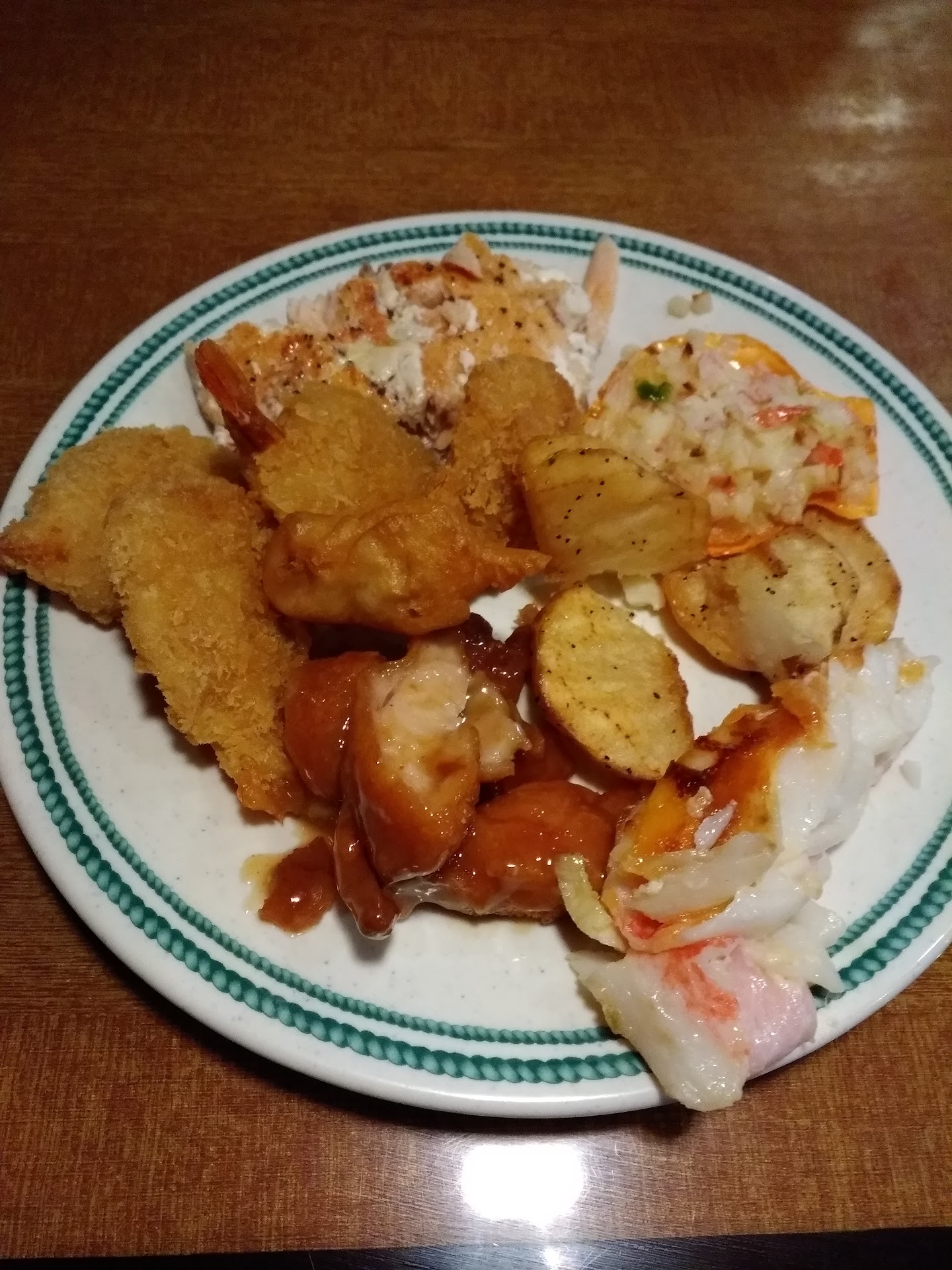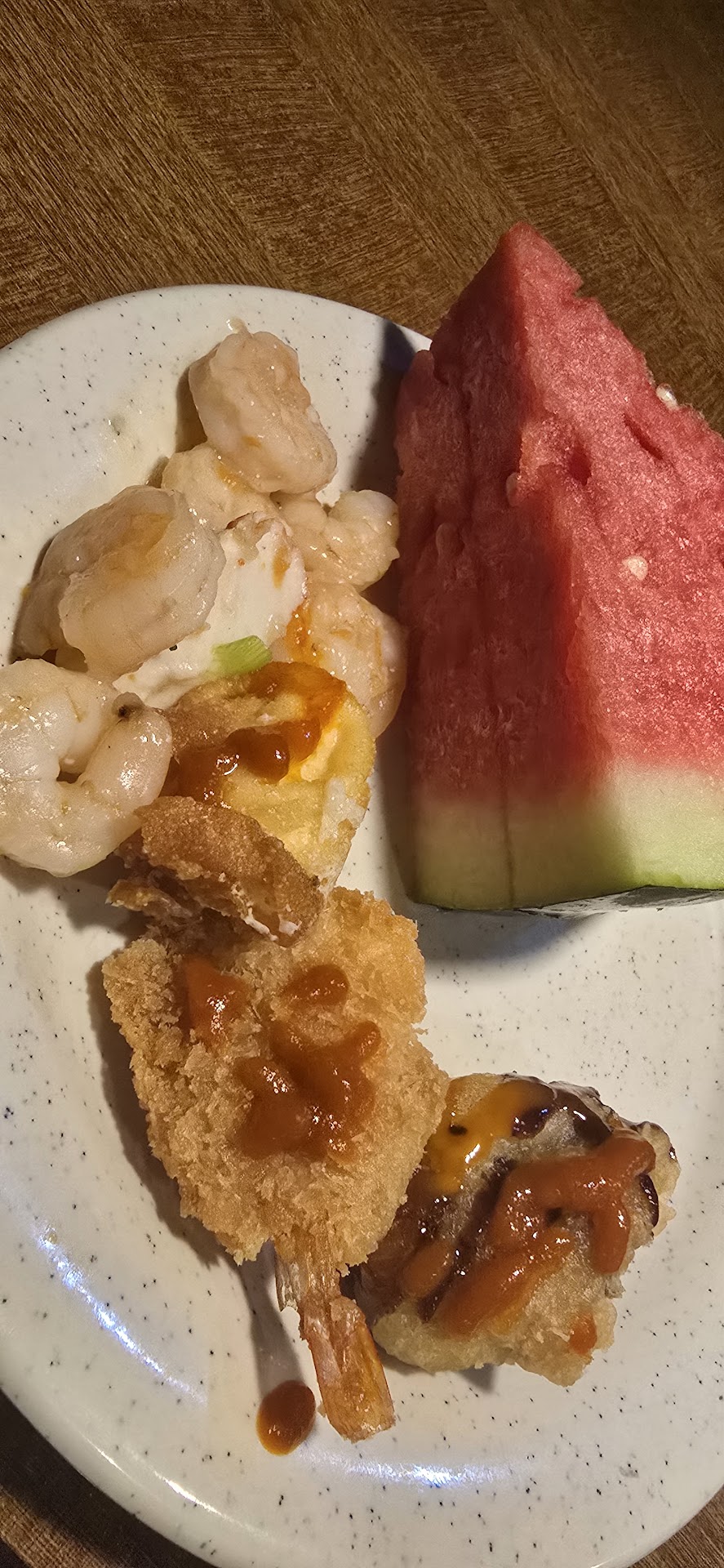 Read moreI could eat here once a week a decade ago. Took a break when Covid hit, tried to return last year, but it's just not right. The taste is off. The overall facility is dirty. It has vibes of Ponderosa when it was on it's way out, like they're trying to scrimp and save to save a dollar to keep it going. The crowd that frequents it anymore is just kind of gluttonous and pushy, like they want to run you over and eat as much as they can, with no concern as to what it is they're eating. The drink girls/bussers are more concerned with getting plates off the table than anything else. They'll take a dirty plate off a neighboring table with a gloved hand and take your cup for a refill with the other hand and bring yours back with the same gloved hand they handled the used plates with. It's simply a dirty establishment with the sole purpose of churning money into the owner's lap, with...