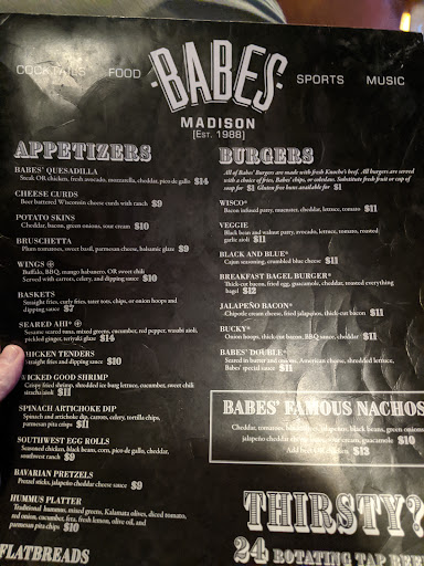 Read moreBabe's is more than meets the eye. I wasn't sure what to expect when I walked in, but was impressed with the very modern and Madisonian decor. It's been easy to become attached to the restaurant. The staff is great and everything I've eaten there has been wonderful. Try the fish tacos and definitely save room for desert. I'm not a chocolate cake person, but the chocolate cake with layers of fudge kind of amazing. It's best shared between 2 people. The carrot cake is just as good; even though it's a big piece I really hate to share. I keep missing the live bands on the weekends, but rumor has it, the restaurant is usually packed and the crowd is a lot of fun. I feel like Babe's is a can't miss if you live in...