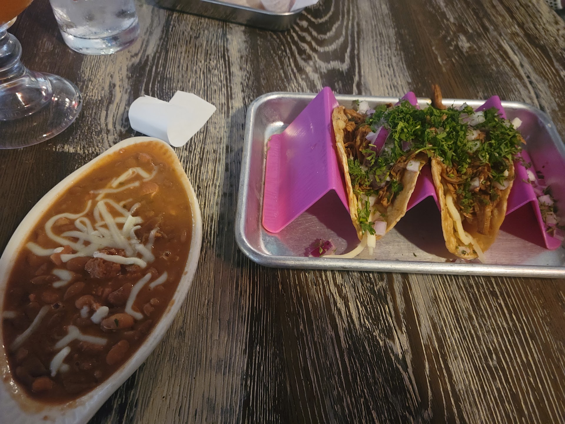 Waiter brought us the wrong food. Ordered (6) total tacos. (1) Pulpo Al Pastor, (2) Big Sur, (1) Hot Cheeto and (1) Mahi Mahi. Instead he brought us (2) Pulpo Al Pastor, (2) Big Sur, (1) Hot Cheeto, (1) Wabo Cali and (2) Mystery meat tacos. We let him know and he said “Oh I’m sorry.. those are good tacos though”