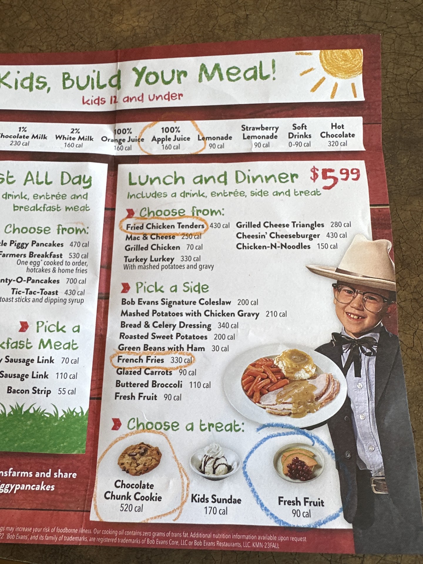 Read moreWe got there when it was slower in the evening for them, so they were not that busy at all. The hostess was rude about seating us, and did not grab any silverware when we sat down. We had our two children and there were no kids menus at all. At first our waitress was prompt at getting us our drinks, but then when we ordered our food, she brought out our rolls (which got cold from sitting so long for our food) then disappeared for 45 minutes. When she finally showed back up from her smoke break (based on the fresh smell of cigarette smoke on her). She acted like she forgot our food when she saw our unhappy faces. We were sitting in sight of the kitchen and we could see our food sitting under the heat lamp for a very long time. Our kids ordered piggy pancakes and they were stiff from sitting under the lamp, the gravy on my wife's mashed potatoes had formed a film, her carrots were cold, and my home fries had become soggy along with my eggs were oily. This was the 3rd time in row we gave this location a shot hoping for better service, we were sadly disappointed again. We won't be going back to this Bob...