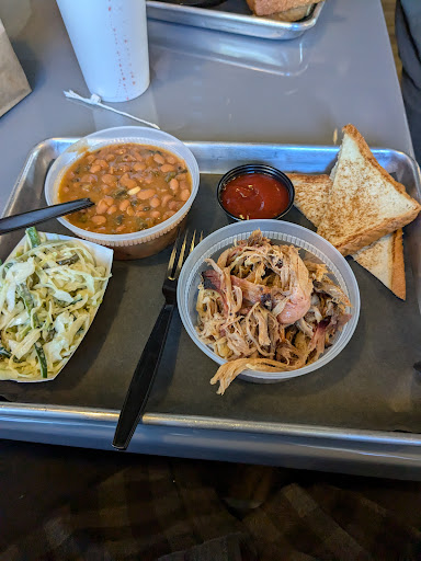Read more1st time eating at this place. very nice people and very clean inside. however the food was not so good. it was like the sides were heated up in a microwave, they were way way to hot from overheating. The pork tasted like it was in the refrigerator for a couple of days. The Bread was fine. but the long strips of peppers in the slaw was over bearing. very little seasoning in the beans and also full of peppers. This place is far from traditional georgia BBQ... I will not returning for...