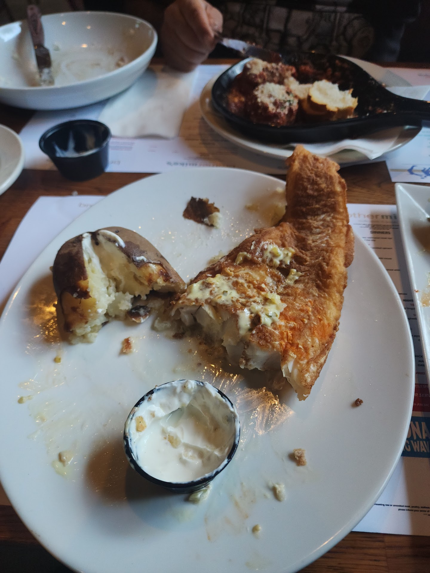 Read morePeople say there are some items with ordering on this menu, but stay away from anything with fries. Ordered the Fish and Chips and originally came out soggy yet everything seemed over browned. Second try fish was ok, definitely frozen fish, but big portion, Fries now a litter stiffer but over cooked and burnt now. They definitely just suck the fries from my original dish back in the fryer because there were less and they black when they came out. Staff is friendly but you definitely have to flag them down to get anything. On the positive good amount of TVs and laid back crowd. And a good setup to watch a game. Just eat...