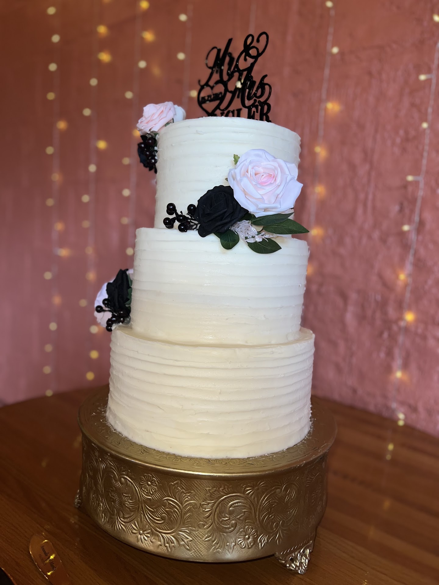 Read moreWe chose Cake Krums to bake our wedding cake. Merri was absolutely fabulous from our cake tasting all the way until delivery day. She is a very busy hard working baking woman so we tried to only contact her when it was absolutely necessary to and when we did, she responded in a reasonable timeframe. The day of delivery there was a last minute tweak to the delivery schedule but she communicated with my wedding coordinator to work that out. Extra Tip: get yourself a wedding coordinator lol! Merri baked a very tasty three tiered, three flavored cake for us and the guests to enjoy. She also placed faux flowers I provided to her and our cake topper on the cake. In the pictures, you may see the cake leaning just a little bit, but I do not believe that was due to anything that Merri or her staff did. It was a little warm in our venue around the time we cut our cake at 7 PM and two of the icings were made of cream cheese. Overall we were satisfied and our guests are still talking...