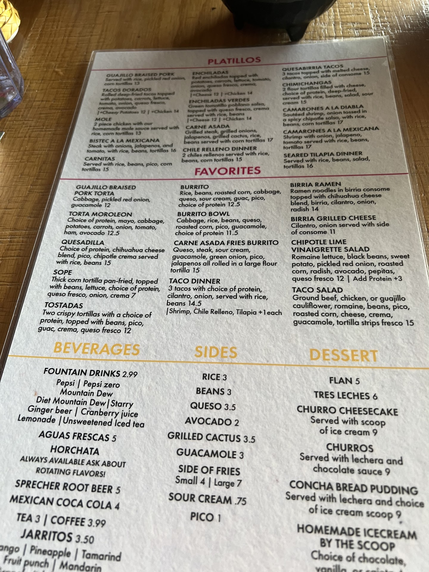 And if you have room at the end, be sure to try their Tres Leches cake or their basket of Churros....