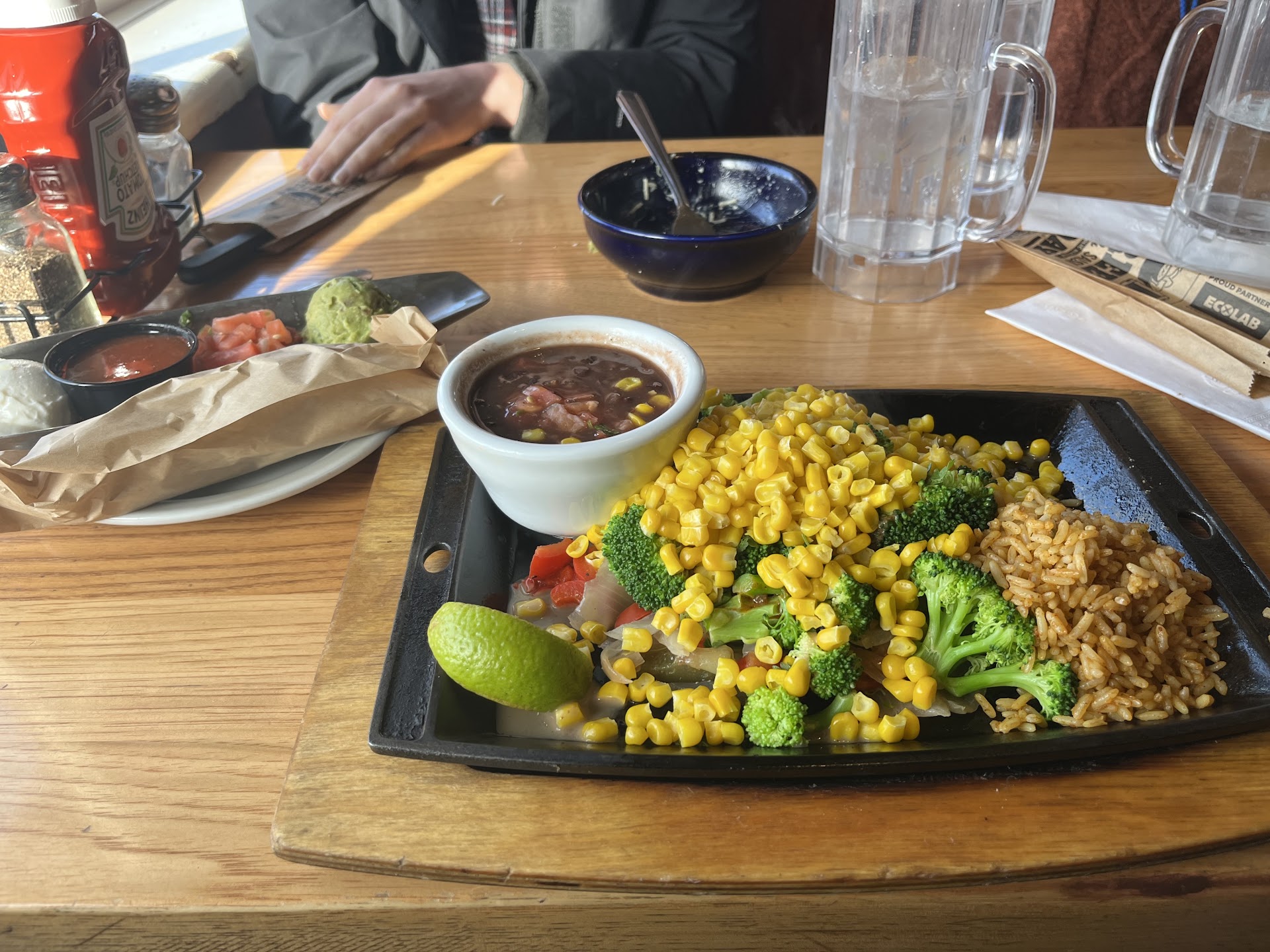 So we start eating our food and quickly we realize that we don't have any silverware. So we look around and none is to be found. Okay, it is what it is. So I had asked the host that was sitting down and wiping down menus for some silverware and it felt like I was asking him for an impossible task he got snarky and simply said that they're behind on dishes. But he did reluctantly get up and go back to the kitchen I'm sure because the silverware he had brought back was wet. So clearly they just came right out of the dishwasher. But in what world though, is wiping down menus more important than doing dishes?