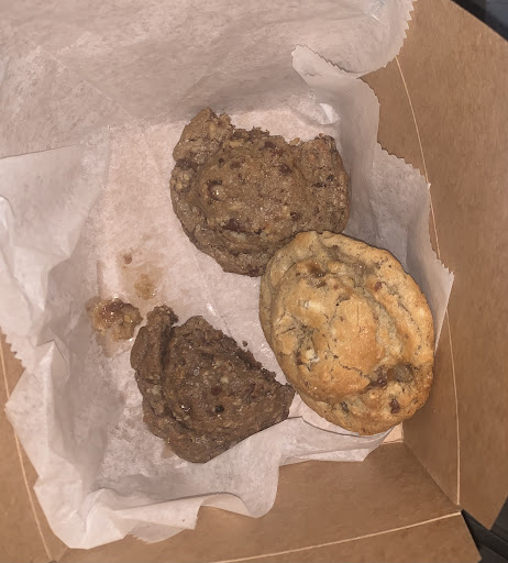 Read moreThe cookies are tasty so far but I repeatedly asked for two warm Blondie cookies and was still given the last cold one… lol.. I even prepaid for all 4 I ordered since the Blondie Crunchs weren’t quite ready to serve and said it was fine cuz I could go grab something from the next door pasta place while waiting. The 1 warm cookie I did get didn’t even make it into my photo since I immediately ate it. If you want warm cookies, better stay in there and watch!😂 And if you want options/variety, you need to go earlier in the day! I went at 6pm today (Friday) and there were only 4 options left, with one of those options being the recently baked batch. Overall, will probably be back but definitely annoyed cuz I left the house for warm cookies. Maybe there is some sort of policy, but I was not...