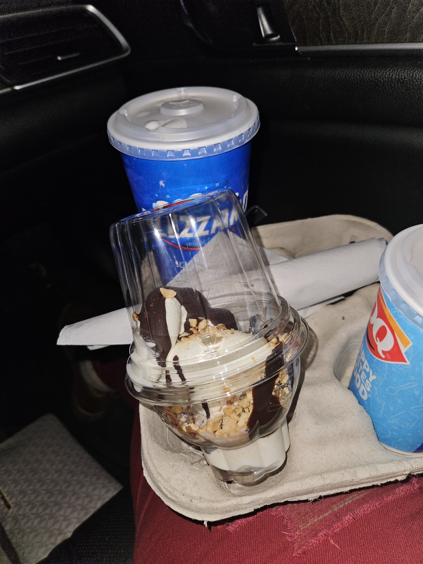 Read moreOdd thing to be upset about... But this was our special treats.. My husband and I have had an unhealthy addiction to blizzards recently. Lol. This location has been our go to place. Initially it was fine. However, over the last month or so it has become very bad. Customer service is a joke. They simply don't care about their customers. We pay for extra toppings. I prefer oreo. Pay for double.... Get half a blizzard that has absolutely nothing in it. Just ice-cream. Tonight was the final straw.... They hadn't kept the machine full so my hubby was asked to pull forward while they waited for the ice-cream to thicken. Mine came out only half solid.... Not even milkshake thick. His was with a lid on top and dripping all over the place. The girl simply handed it to him and walked away laughing. She wouldn't return when he called for her. He just left. Got home and it literally exploded when he put it on the counter. I think this is a sign that we are done with blizzards. And definitely done with this location when we do want to grab one. Just very...