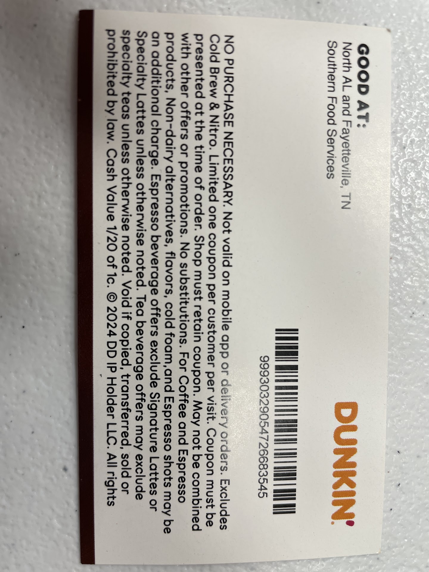 Read moreSo I thought I’d give this Dunkin’s a try after having a bad experience at another location. I get in the lane to order at 4pm on Saturday September 28th, and was promptly greeted by the machine asking me if I wanted to try something new. I thought it was a person so I started speaking. The young lady on the mic told me she wasn’t ready to take my order. I say ok sorry I thought that was you. 2 minutes goes by. I again say hello, she responds and say she’ll take my order in a minute. I think about leaving and just getting my usual coffee at Panera's, but I wanted to give Dunkin’s another chance. I get to the window and wait another 2-3 minutes. I observe a gentleman standing catatonically at the front doing nothing, While the young lady takes orders and slowly makes my Coffee. Finally she comes to the window and I give her my card. She scans it and says oh this is only good for a medium hot coffee. I was confused. I read the back of the card and it clearly says that the only thing excluded is Nitro and cold brew. She shrugs her shoulders and says, well it only lets you get a medium hot coffee. She consulted catatonic boy and he also shrugs, I wait to see if she would do the right thing, but she just tells me the price. So I paid for it, the only reason I didn’t just leave is because I had invested so much time in this one interaction and I had to get back to work. It’s easily one of the worst customer experiences I’ve had and I won’t be back. @DunkinDonuts, Train the staff to at least pretend to have customer service skills. I understand a job is just a job to some people, but it brings down the quality of your brand. We have a lot of options now when it comes to...
