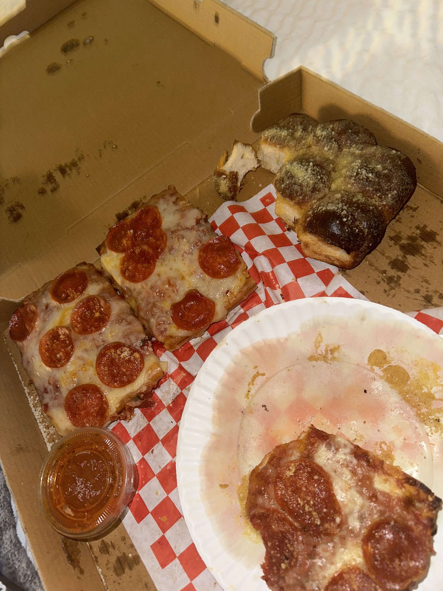 Not scilian style for one also completely and the slices were undercooked and the garlic knots burnt. The order was cold, I don’t even think it was warmed up with how cold it was. When I called to get a refund the guy was completely rude and refused! 0/10 would recommend as it is not worth it all. Wasted my time and money that looks as if I won’t get back and felt sick after barely...