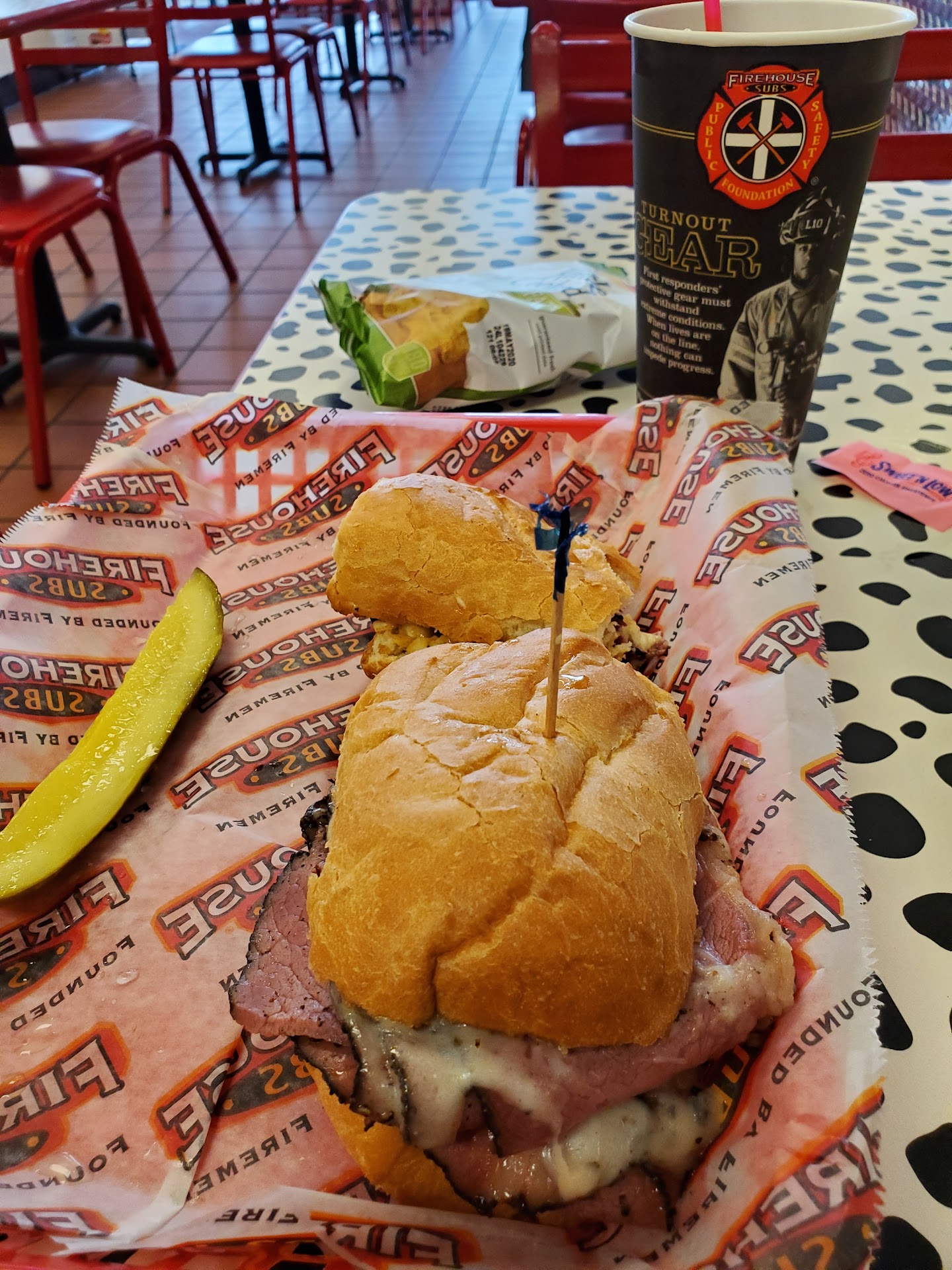 Read moreFirehouse almost anywhere is pretty consistently great. But at this location the customer service is just okay. I got a take out order with it being placed online. Generally speaking, usually all that is involved is getting drinks with everything else being in the bag. When I got there, I had to ask for the brownies and chip that went along with my order. She pointed out I would have to grab that myself. Maybe that's how it always goes but seems to defeat the purpose of ordering ahead. One brownie had to be taken out of the cooler. I had an order for three people, you think a drink holder would be offered to me. Not at all. I will say they weren't unpleasant about being asked by me for everything but they weren't exactly enthusiastic. When I went to get my drinks, the soda foundation was out of a lot of drinks and there was no ice. At least the drinks came out cold, so I didn't even bother pointing this out to an employee. Unfortunately a father had no problem informing them. Overall the experience wasn't terrible but much improvement...