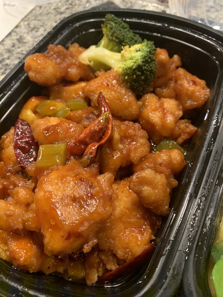 We ordered General Tso's chicken and curry chicken. The General Tso's got super mushy on the way home, steaming in its container, but I don't really hold that against them. It was generic but had an okay flavor. Wish there had been some more veggies.