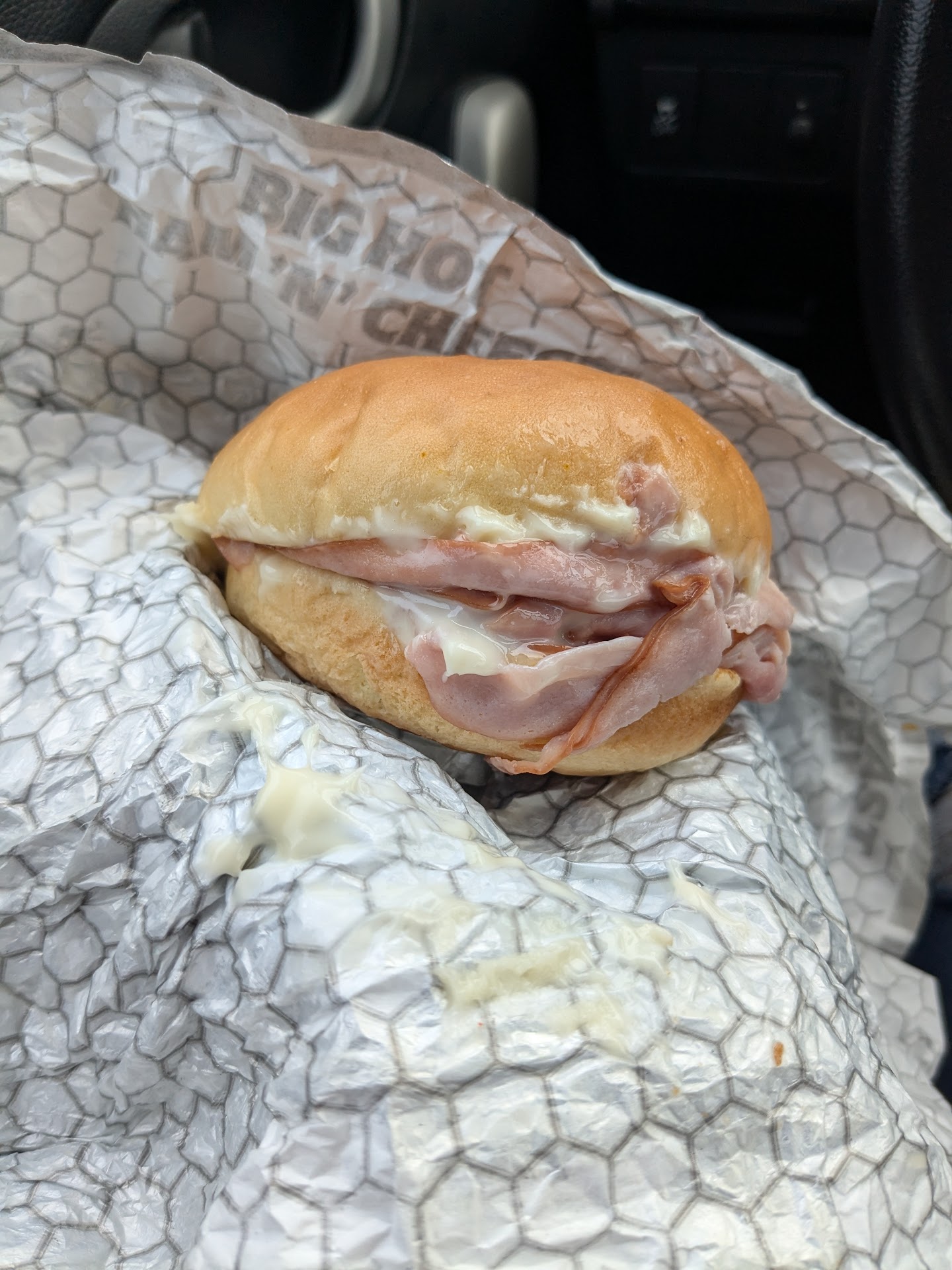 Read moreI ordered the Big Hot Ham ' Cheese because I had a coupon that made it $3. It met the expectations of being $3. It definitely wasn't awful, and they're very generous with the amount of ham that they put on the sandwich, but I mean, how much can you say about a ham and cheese sandwich? It tastes like a ham and cheese sandwich.