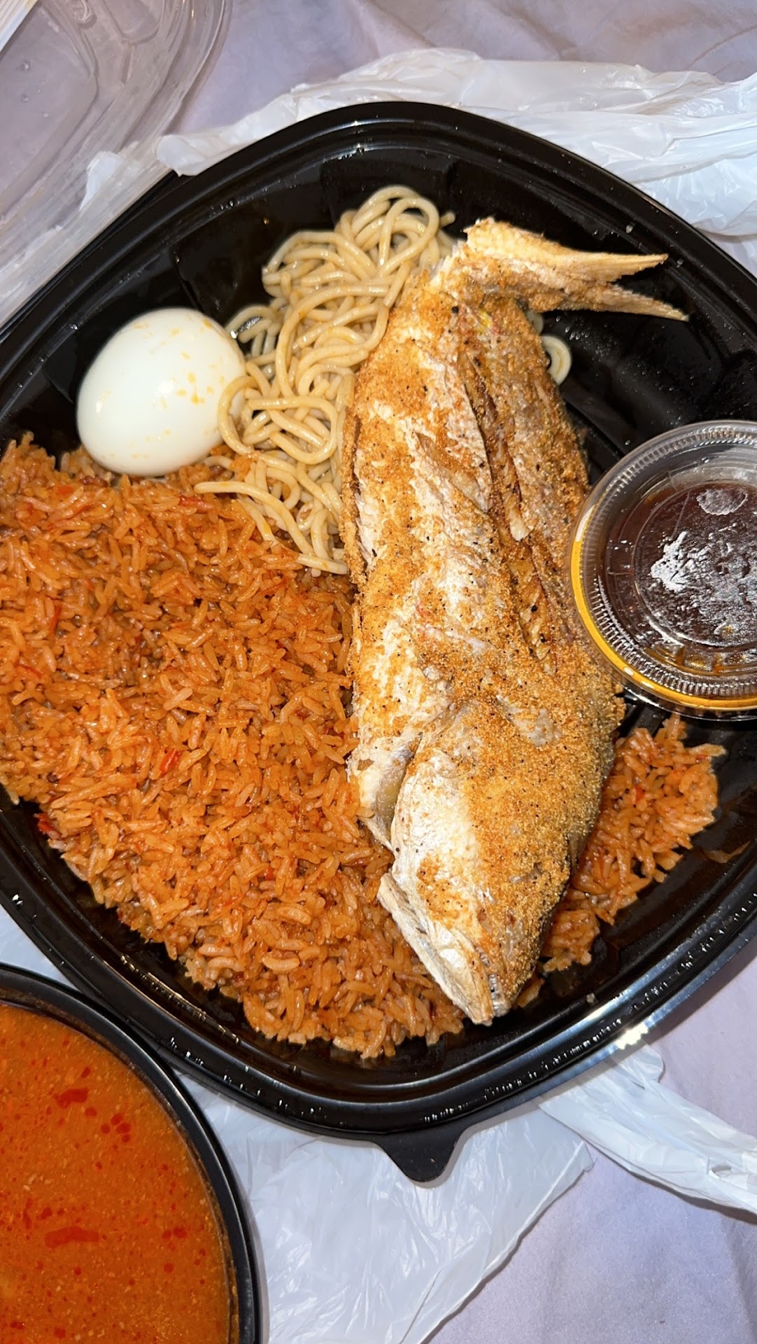 Read moreI got the Red snapper fish with Jollof rice & fufu w/ beef soup. The customer service was good the young lady at the counter was nice and friendly. The Red snapper fish was good but I probably would only get that now and then because it is lots of bones and I am too greedy for that lol the jollof rice was kind of dry, the consistency of the fufu wasn't as thick as I'm used to it tasted kind of watery to me and the soup was bland. I can definitely agree I would love for this place to succeed but the price was also too high for the food for me for the quantity as well...