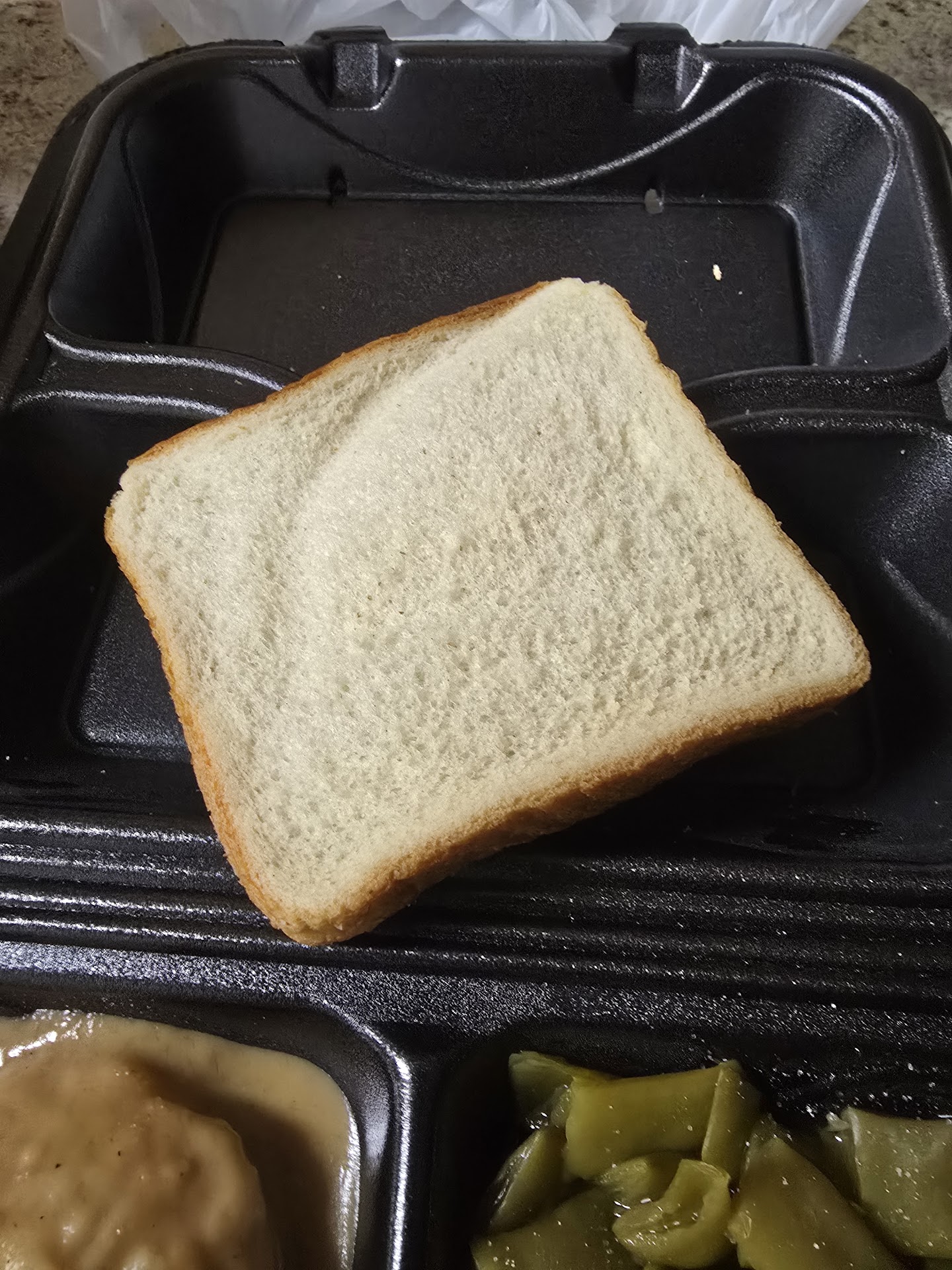 I was then told they were also out of biscuits, but would I accept Texas toast?. Having no other choice, I agreed. When I got home, this was what I found (see photos attached). It was two pieces of white bread, barely toasted on one side! The rest of the food was delicious as usual, which is why I usually "Eat at Jack's!"