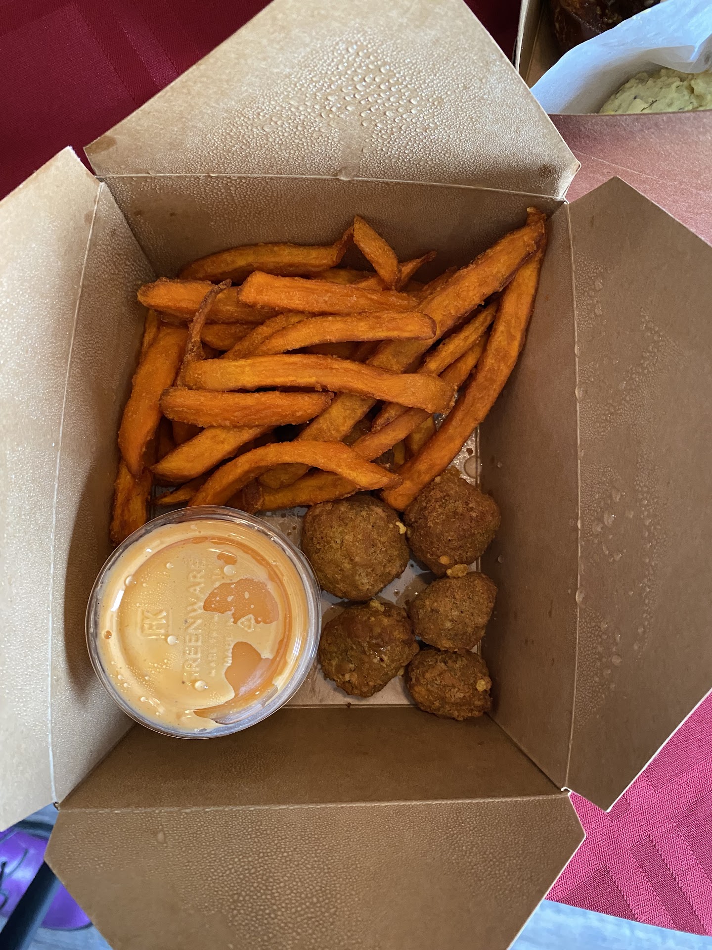 Read moreI hosted a small family party today, and we were excited to order food from JustVeggiez for the first time. I'm always grateful to have new vegan options in the area. When our order arrived, however, it was missing one of the sandwiches and sides we bought, and the prices were exorbitant on some of the items for how tiny the portions were. (For example, the $8 cheese curd order was just six little bites!) And while I knew what flavors I had ordered, it was a little odd that none of the juices had any labels on them like in their pictures online.