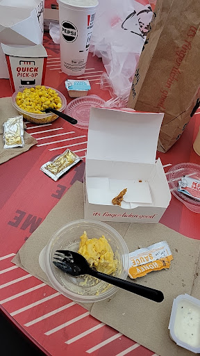 At this point the person I was with just wanted to go but I realized there was no way we would have enough gravy for the three large mashed potatoes we now had. I pointed this out and she gave us a couple more tiny gravy containers. Maybe they are out of large containers? If so I wish she would say that. She did eventually say she gave us extra potatoes because they are out of corn. Still no clue where the Mac n cheese came from. And they forgot the drink so we had to ask for that. In the end, Iām sure some of the extra food we got will just get thrown out especially since no one we were dining with cares for kfcās Mac n cheese.