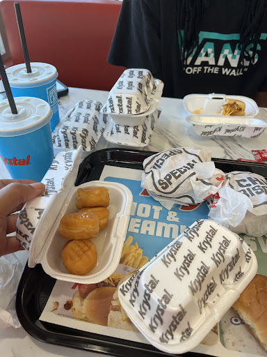 Read moreI have always enjoyed krystals. I find their food enjoyable, and while it is common for a wait, it is not nearly as bad or consistant as steak and shake's. This Krystal inperticular was empty of costumers when I walked in, as I assume was common for the time it was and the place of the Krystal. When I walked in a manager was chatting with others, and sent me a polite wave. I believe the staff was chatting as well, but by the time I reached the counter a lady was already waiting to take my order. I ordered and sat down. I received my food a few minutes later, not a long wait at all. The lady who brought my food mentioned that one chick was left out and would be brought when it was done. The other chicks on my tray were cooling so I believe they were precooked earlier, and I received them now so they wouldn't get colder as the other cooked. I finished my chicks and noticed the other had not come. That was fine. I went to the counter as was given one. I do not hold it against her as she probably frogot, and I could see myself doing the same. And while unnecessary, the apple pie given as consolation more than made up for it. If you are looking for good costumer service, however, I believe this place...