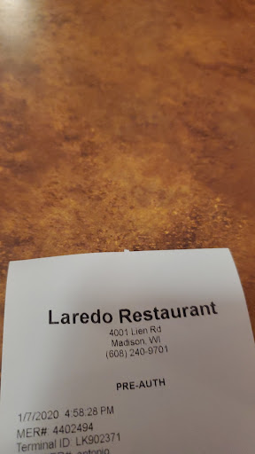 Read moreI want to start by saying we frequent the Laredo's in Fitchburg. Love the place! Was hoping to have the same quality food here as we do there. Unfortunately Lien road laredo's was a major let down. We were seated promptly but that's where the good ended. We ordered the queso fundido to start. What was brought to our table first was the plain queso. No big deal. We reiterated that we wanted the queso fundido and they corrected the order. What they brought out to us however was a mess of cheese and chorizo without a single poblano in it. For my main course I ordered the chimichanga colarada. What I got was more like a smothered burrito with rubbery flavorless chicken, a ton of cheese and a massive amount of corn in half of it. No rice or beans, and no queso fresco. My girlfriend ordered a taco with a bunch of extras and a side of peppers and onions which was good. We saw our server maybe twice and had to flag down others to get silverware, napkins, and more than one thing of Salsa. We also struggled to get anyone's attention to get a drink refill which didn't arrive until our last few bites. A very disappointing experience here which was surprising given how incredible the food and service is at the...