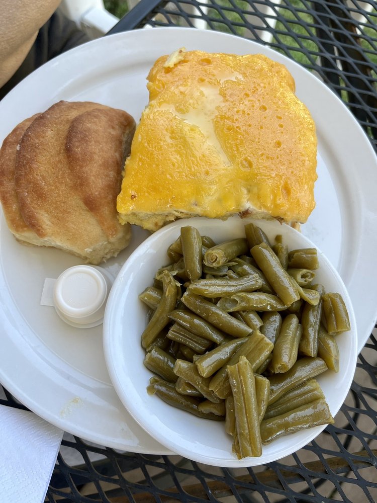 I ordered the poppyseed chicken casserole with the hash brown casserole, while my mom had the poulet de normandie with green beans. Both entrees came with a yeast roll.