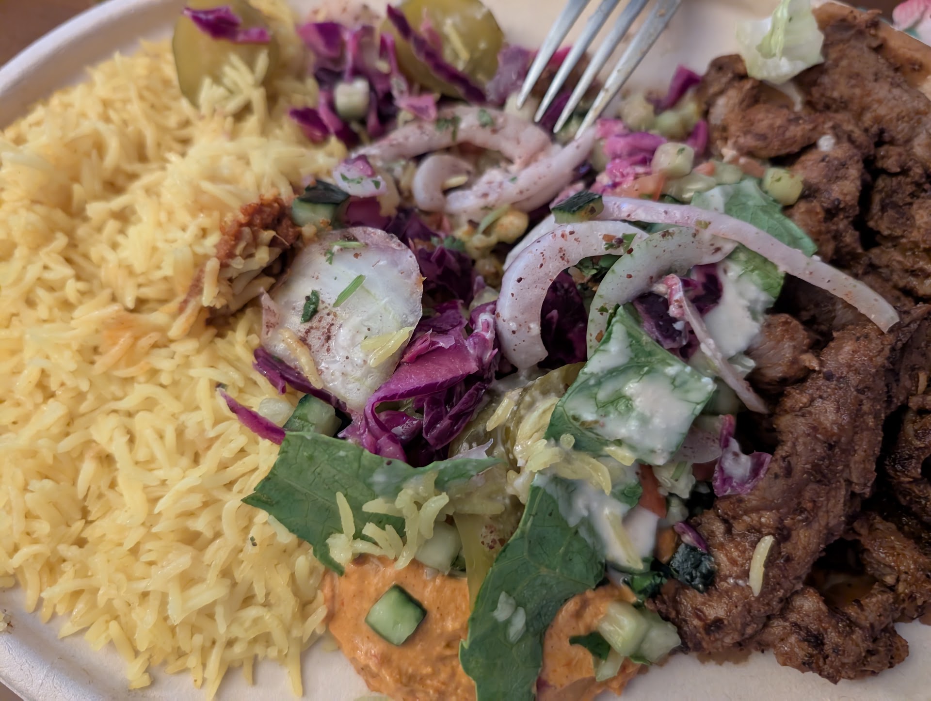 Read moreI like this place a lot, but my wife and I went tonight. It was 7:00 pm on a Saturday. They were out of rice, falafel, chicken, and steak. The lady asked us what we wanted. My wife said, "rice bowl with chicken please." The lady said, "we are out of rice and chicken will be a minute." My wife said "I guess I can have couscous."