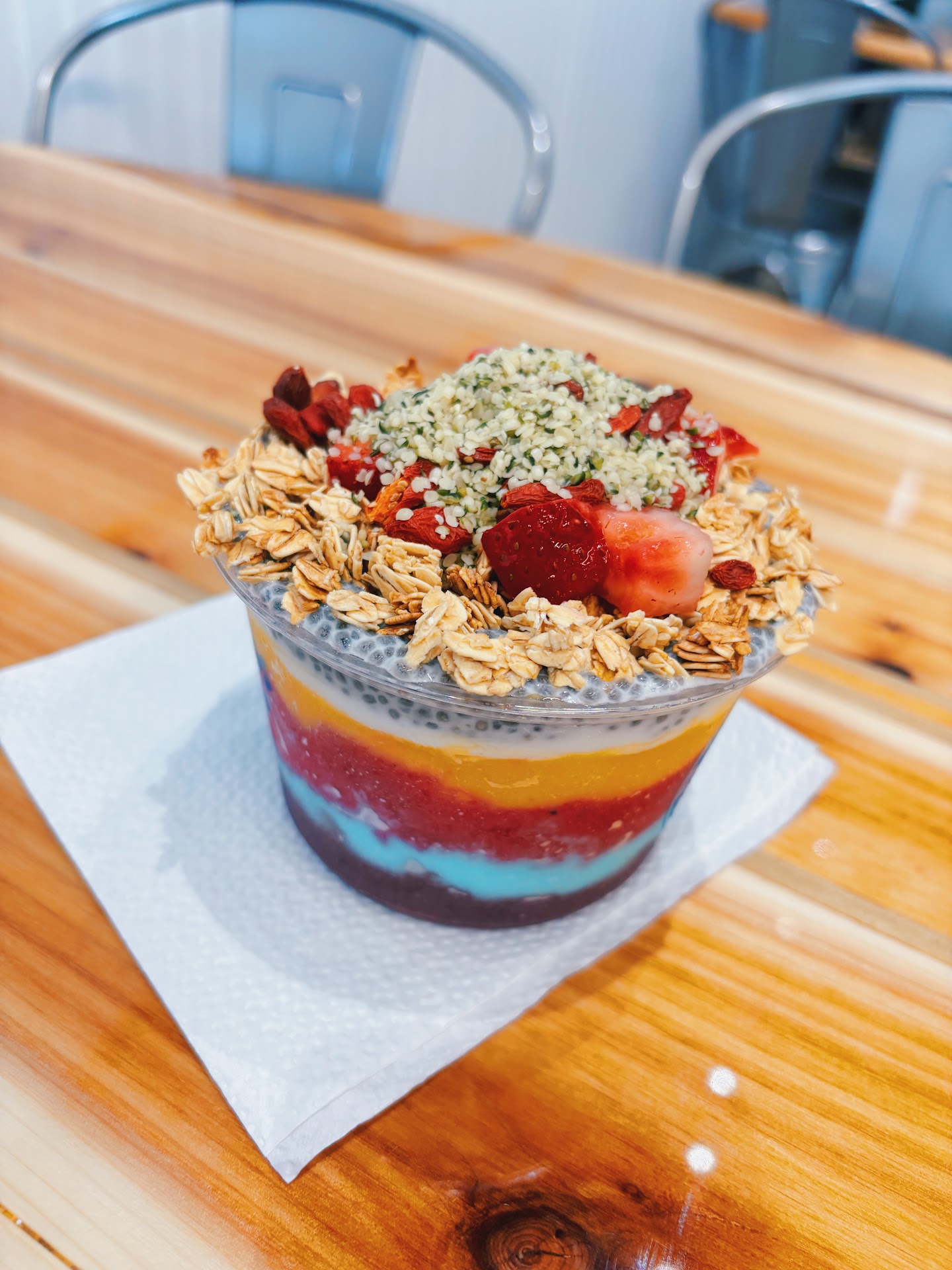 Read moreVery clean and nice atmosphere! Shaun recommended me to build my own bowl because I was very conflicted with the menu, I ended up getting açaí, blue magic, and pitaya, with toppings of granola, blueberries, strawberries, coconut flakes, and honey! It was a 10/10!! Tasted very fresh, organic, pleasing to the palette, and left me shocked as I was nervous entering before.The staff seemed very educated and pleased to be serving! I will definitely be...