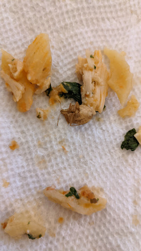 This is DISGUSTING. I ordered food on 11/30/2021 at 3:59 pm. Picked up my food at 4:15 and brought it home to eat. About 2/3 of the way through my meal, I noticed something hard and sharp in my mouth. Hmm, that's not quite right. I pulled it out and began inspecting what looked at first like a sharp clamshell or something. How the hell did that get in there? NOPE. Turns out it was a fully COOKED STINK BUG. Obviously I spit everything out, so sorry for the lovely half-digested food photo. But you can clearly see the STINK BUG. I understand that mistakes happen and insects can make it into weird places, but HOW DO YOU NOT LOOK AT WHAT YOU SERVE YOUR CUSTOMERS before sending it away. I can't even think about Noodles without gagging. It goes without saying that I won't be eating at this location ever again.