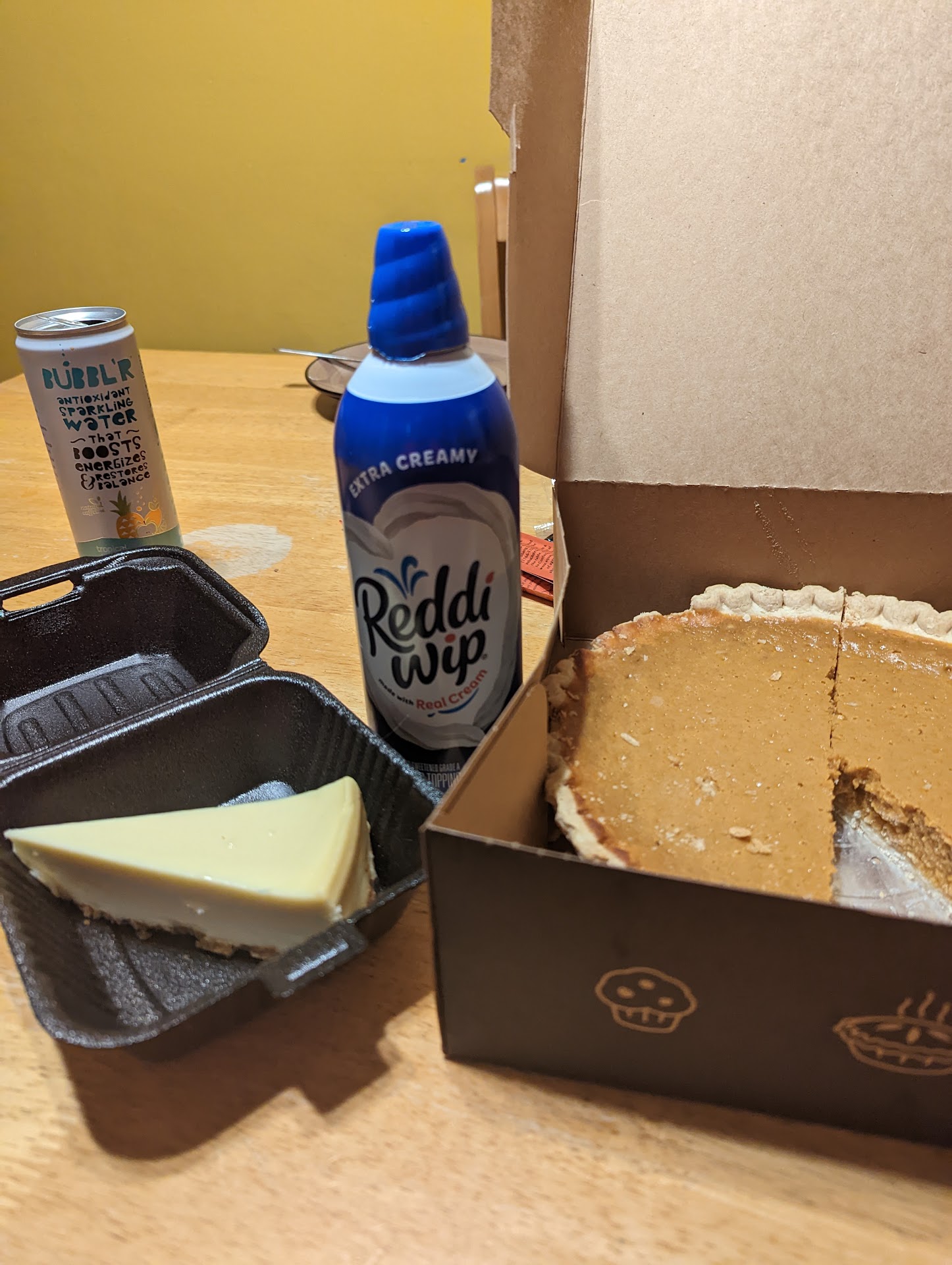 *(Original review): Wanna make someone you care about in your life happy? Stop at Perkins on your way home from work or school and get a pumpkin pie from Perkins, or a couple of slices of cheesecake. Better yet...get both. Don't forget to stop at your local grocery store to pick up some Reddi-wip in a can. You...