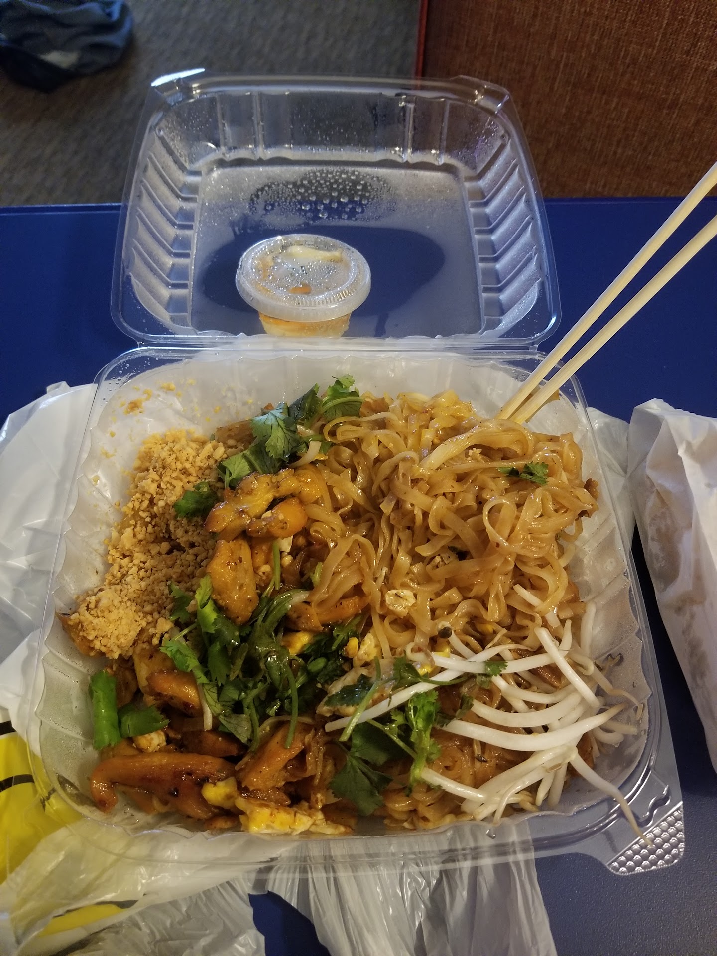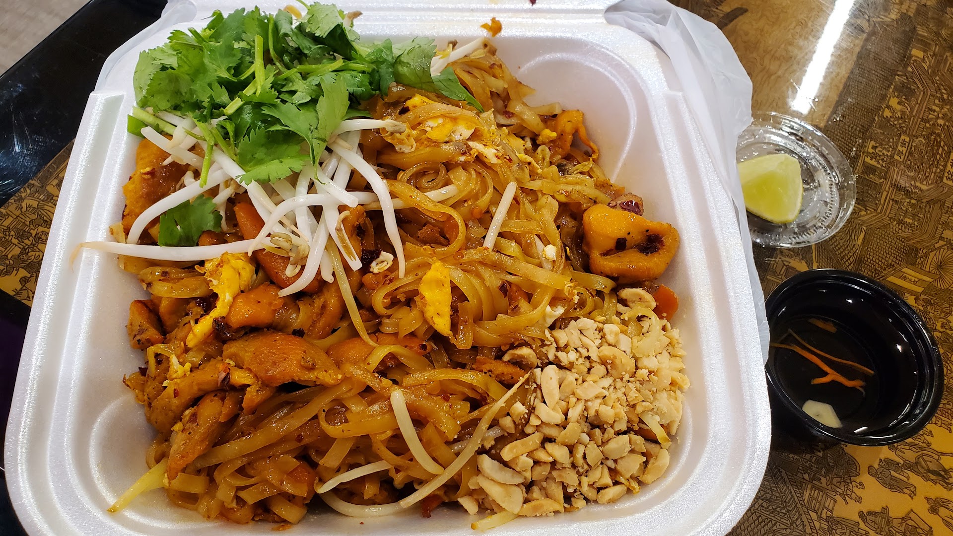 In its plastic carton it immediately looked promising. I could see the fresh, crisp sprouts on top, and a good portion of crunchy peanuts on the side, and most importantly, not too saucy. The light sauce lets the flavors stand on their own more. I was seriously impressed. And the price was very good for 2023 as well. All and all, I'll definitely be back here for more. One of the most authentic Pad Thai recipes I've found in...