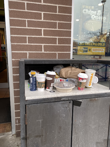 Read moreI think these photos should speak for themselves. I have never been to a more filthy Qdoba or food establishment for that matter. Upon showing up the restaurant the garbage was overflowing. As we ordered our food the process was very rushed. The change machine didn’t work to give correct change when paying (also there was a handwritten sign on the door stating “cash only”). The soda machine maybe had 4 options. Not one single table was clean to sit at, meanwhile, the staff (4 people) were all standing around chatting. They also proceeded to all sit at a table and eat food that was sitting there when we walked in. If you’re advertising 17/hour wage then your employees should be cleaning the restaurant during down time, ESPECIALLY the restrooms. Both the men’s and women’s restrooms were filthy and smelly. Garbages overflowing, toilet paper dispenser broken, a random water pale? Honestly just unbelievable. I wish I would have seen the restroom before ordering my food, if I had, we would NOT have eaten here. Hopeful for no food poisoning. 10/10 DO NOT RECOMMEND,...