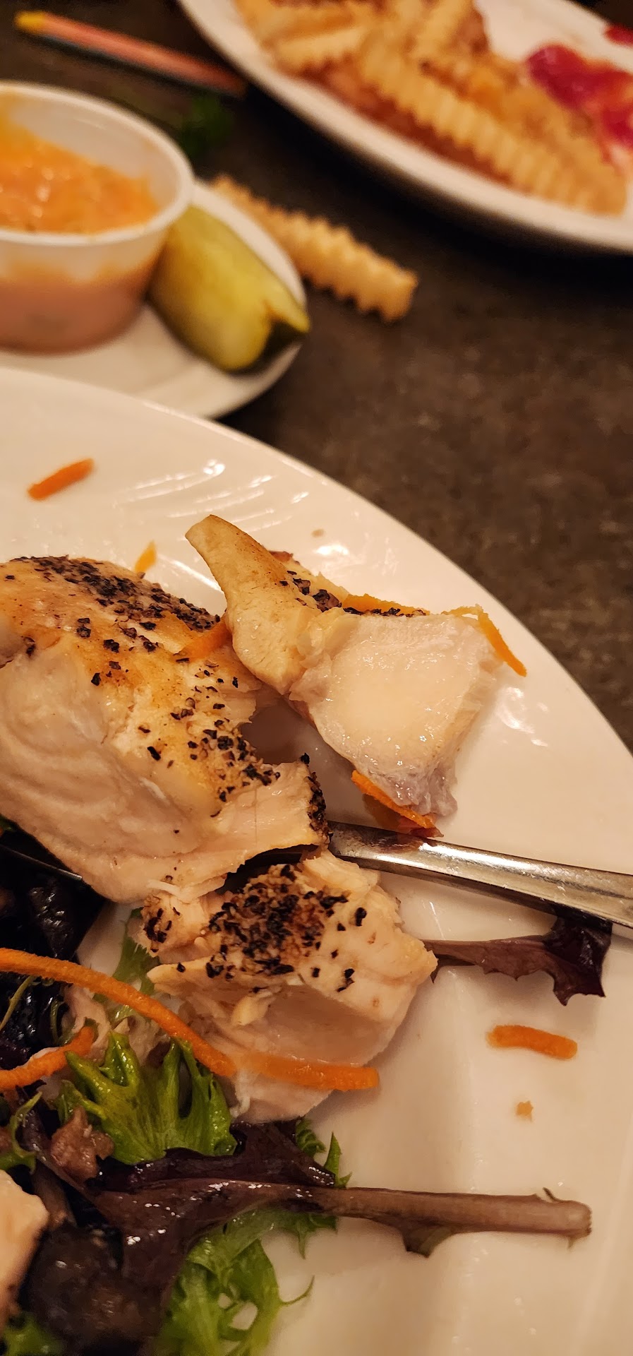 I'm so sad the pork tenderloin w/apple brandy sauce isn't on the menu any longer because it was my favorite, but their prime rib sandwich is great, the battered shrimp is amazing....I can always find something to get!