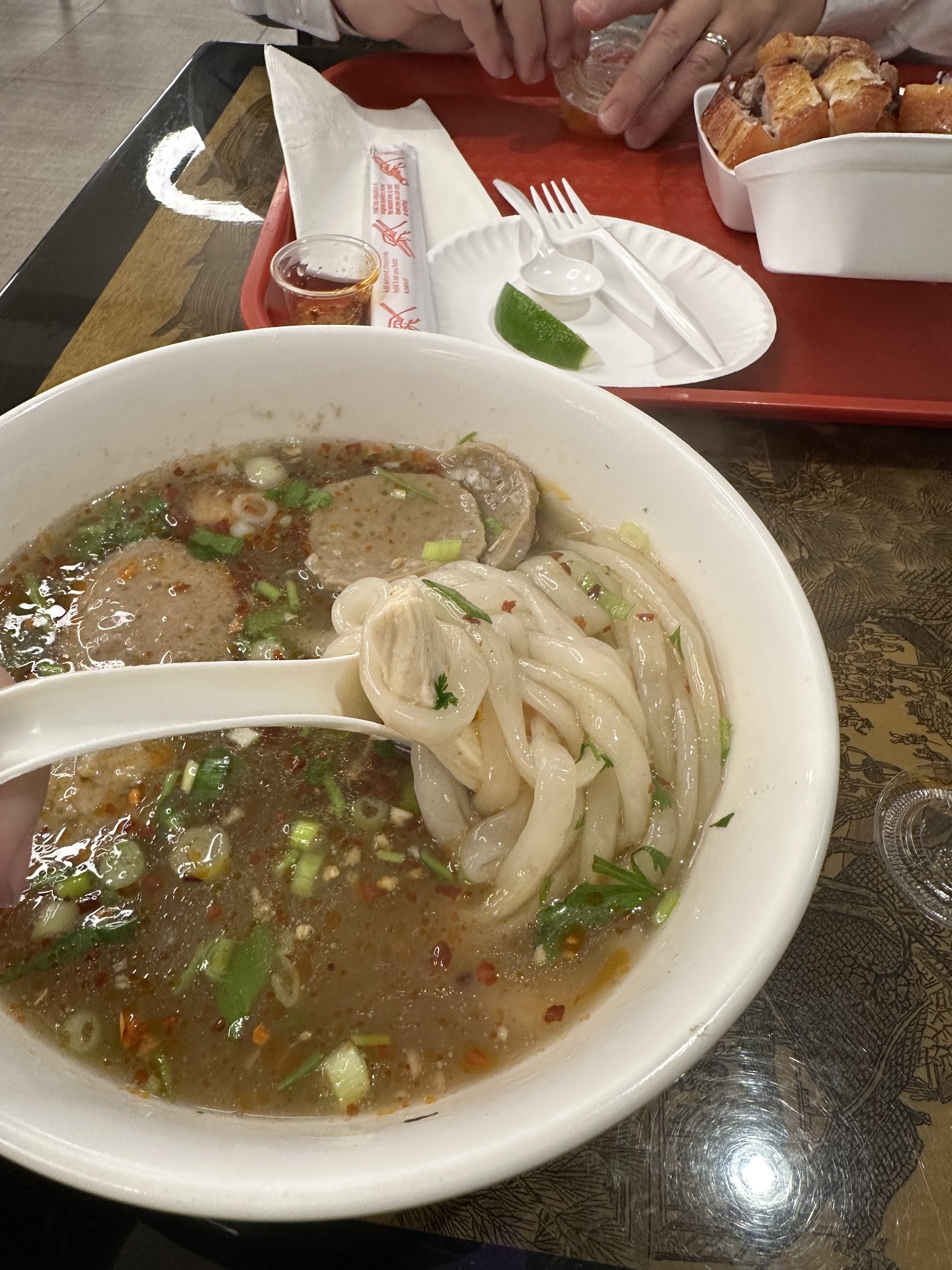 Read more2 stars for having good navaam drinks and sticky rice. Otherwise, their curry noodle is not even curry noodles. It is super sweet like sugar and the broth is thick and creamy and super sweet. Their pho is just not pho at all. There's minimal meat and condiments. The broth is bland. If you know how to eat pho, this isn't pho. The papaya is not tasty. The chicken has no flavor. The sausages, sometimes it is not fully cooked, or too well cooked and dry. 1 star for bad services. I was waiting in line ordering and then waiting to get my food. I saw 2 staffs coughing and sneezing. Some times they cover their mouth and doesn't wash their hands. Or they don't cover their mouth and doesn't wash hands. 1 star for service. I stood there waiting and everybody looks at me. No greet or ask if I needed help. They all just stare at you then continue on with their conversations. 1 star for atmosphere. Overall, will I eat there again and I...