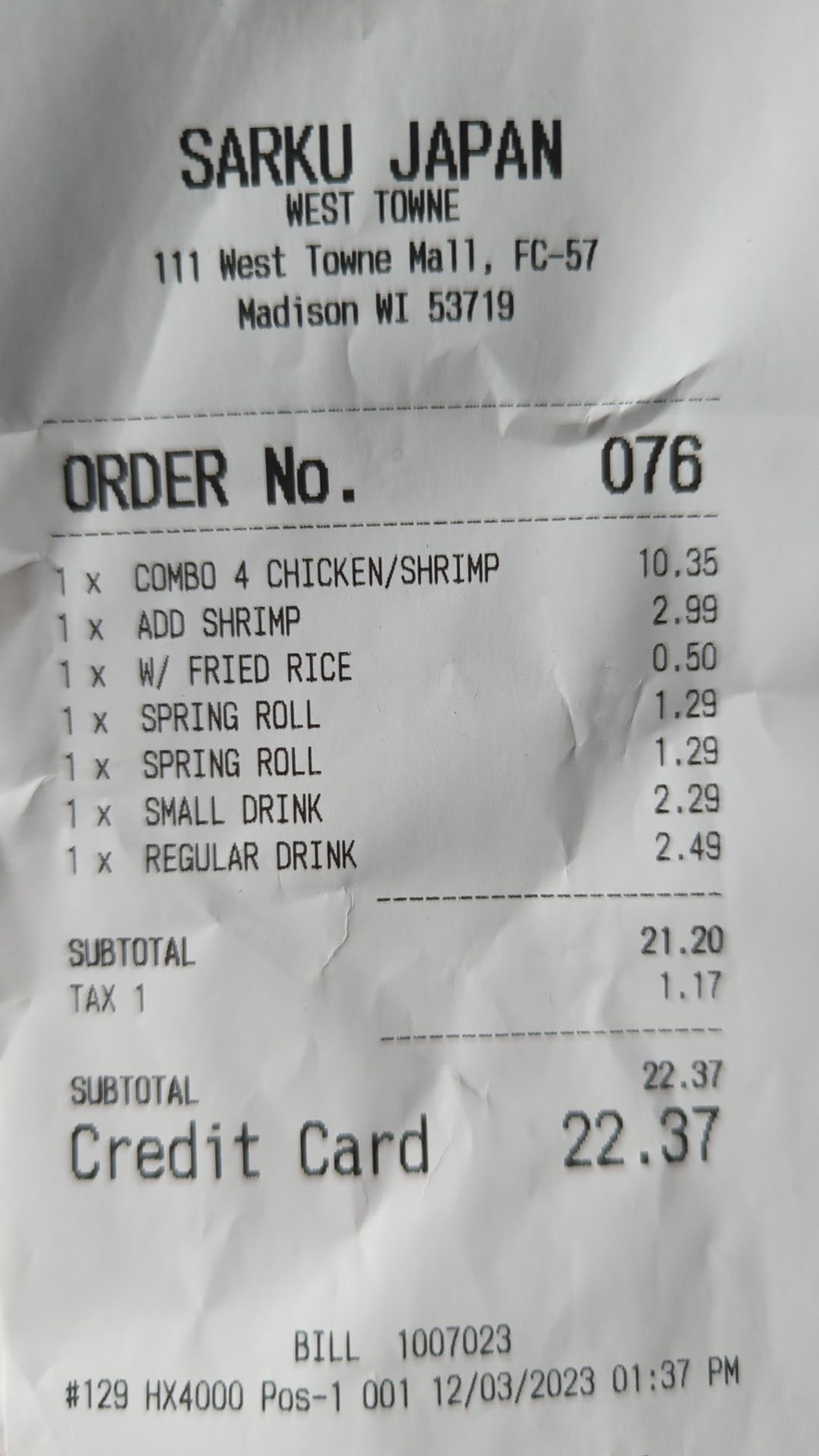 Read moreWe, my husband and I, love this place. I would not usually go for a food court place, even when shopping except for maybe Auntie Anne’s pretzels- I mean come on it’s a mall tradition. But we have grown to love Sarku Japan, especially when we are craving some Chicken Teriyaki- which is actually hard to find, a straight forward teriyaki. The chicken and veggies are cooked to order, the sauce is so yummy.